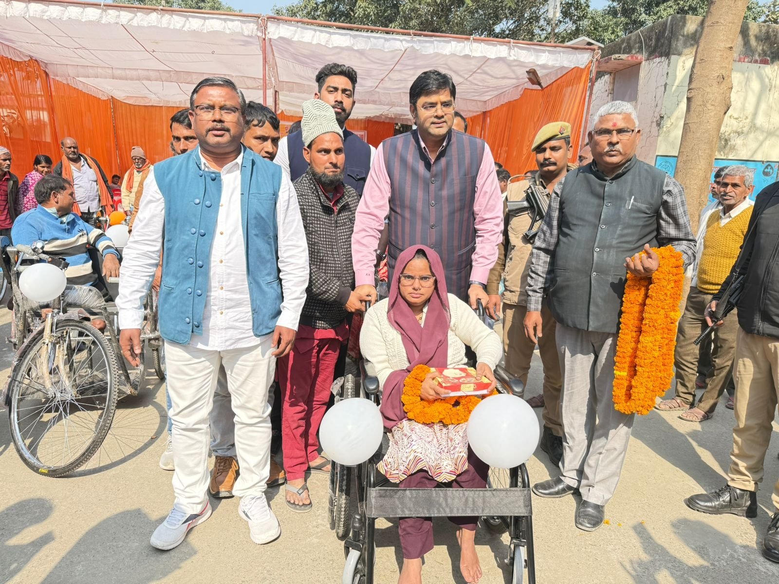 दिव्यांगजन सशक्तिकरण विभाग की ओर से ब्लक मुख्यालय शोहरतगढ़ पर सहायक उपकरण वितरण शिविर का आयोजन किया गया। जिसमें मुख्य अतिथि विधानसभा क्षेत्र विधायक विनय वर्मा ने 28 दिव्यांगों में ट्राई साइकिल, व्हीलचेयर वितरित किया ।