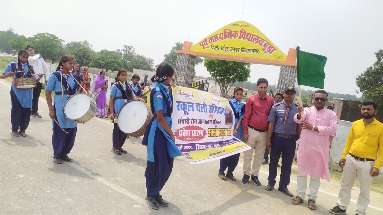 सिद्धार्थनगर। विकास क्षेत्र बर्डपुर के पूर्व माध्यमिक विद्यालय बूड़ा द्वारा मंगलवार को स्कूल चलो अभियान, संचारी रोग नियंत्रण तथा मानव सेवा संस्थान सेवा द्वारा जनजागरूकता रैली संयुक्त रूप से निकाली गई। रैली को ग्राम प्रधान भवानी शुक्ला द्वारा हरी झंडी दिखाकर रवाना किया गया।