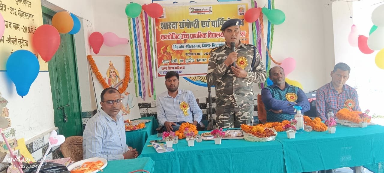 शारदा संगोष्ठी वार्षिकोत्सव व विदाई समारोह के मुख्य अतिथि एसएसबी सशस्त्र सीमा बल सीमा चौकी खुनुवा निरीक्षक राकेश मनिपाल ने छात्र- छात्राओं को संबोधित करते हुए कहा कि सभी छात्र- छात्राएं शिक्षा की गुणवत्ता एवं शिक्षा के प्रति सदैव समर्पित होते हुए मन लगाकर पढ़ें। जिससे विद्यालय एवं क्षेत्र तथा अपने माता पिता के साथ जनपद का नाम रोशन करें।