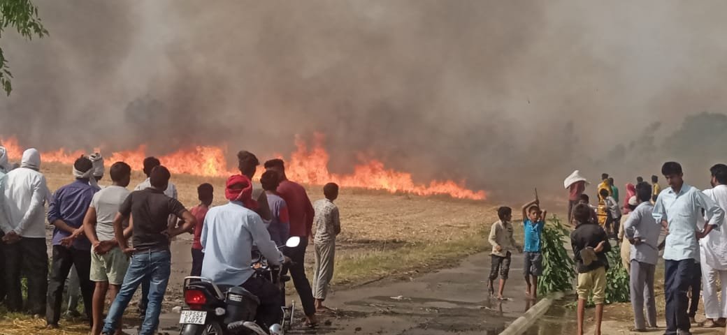 पिछले एक हफ्तों से मिठवल वा खेसरहा ब्लॉक के कई गांवों में लगी आग ने सैकड़ों एकड़ गेहूं की फसल जलाकर राख कर दी।