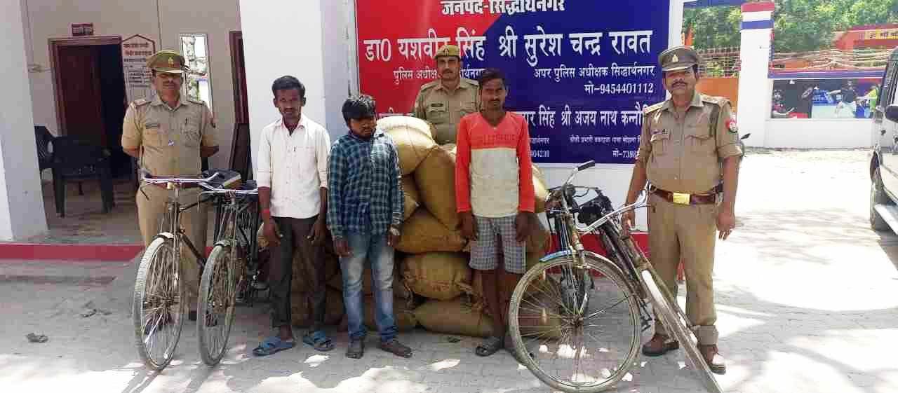 उनके पास से बरामदशुदा माल 17 बोरा गेहूं व 04 अदद साइकिल को धारा 11 कस्टम अधिनियम के तहत कस्टम कार्यालय ककरहवा में दाखिल किया गया तथा अन्य आवश्यक विधिक कार्यवाही की गई । गिरफ्तार अभियुक्तों की पहचान रामविलास पुत्र दरोगा, वासुदेव पुत्र दरोगा, हरकेश पुत्र रुदल निवासीगण भुजौली टोला लीलाडीहवा थाना मोहाना जनपद सिद्धार्थनगर के रूप में हुई है। गिरफ्तार करने वाली पुलिस टीम में प्रभारी निरीक्षक संतोष कुमार सिंह, उ0नि0 अजय नाथ कन्नौजिया चौकी ककरहवा प्रभारी, का0 कृष्णानंद सिंह, का0 शेषमणी वर्मा, का0 राजू कुशवाहा शामिल रहे।