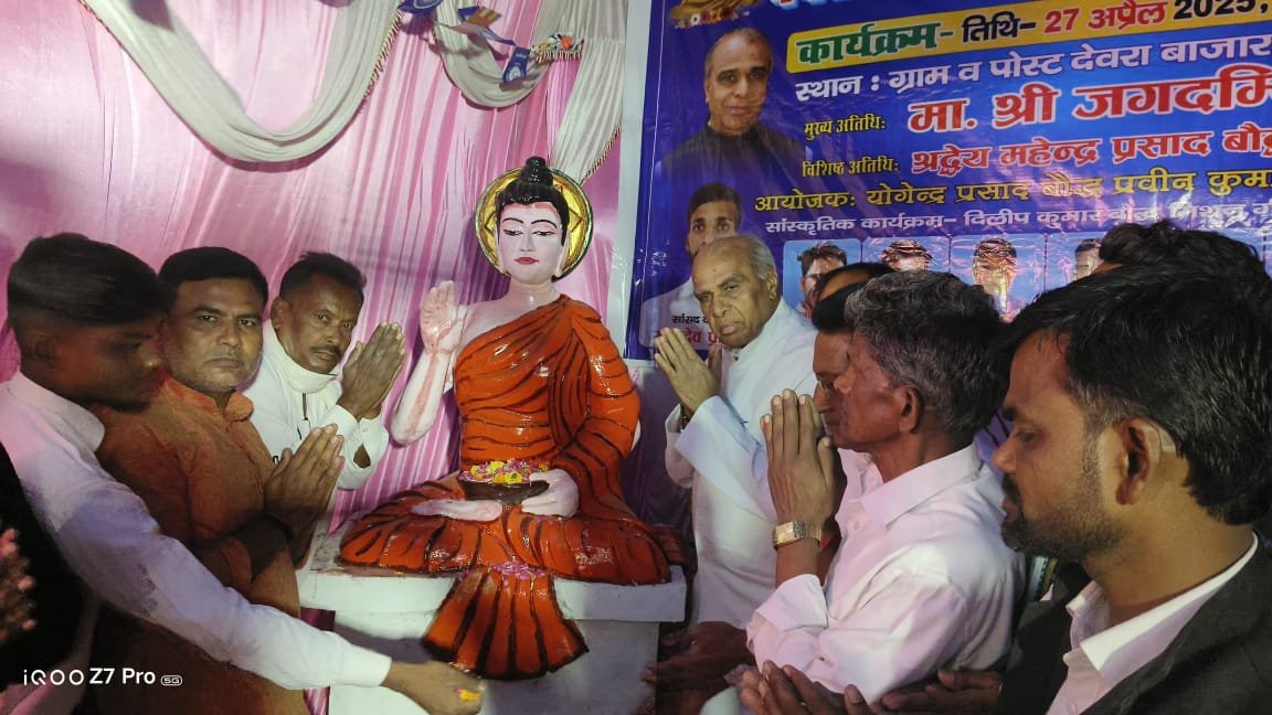 सिद्धार्थनगर। जोगिया ब्लॉक क्षेत्र अंतर्गत ग्रामपंचायत देवरा बाजार में विधि विधान से पूजा कर बाबा साहब डॉ. भीमराव आंबेडकर भगवान बुद्ध की प्रतिमा स्थापित की गई। जिसमें मुख्य अतिथि लोकप्रिय सांसद जगदंबा पाल द्वारा सीता काटकर डॉ.भीमराव आंबेडकर भगवान बुद्ध मूर्ति पर अर्पित किए साथ ही तथागत बुद्ध की प्रतिमा स्थापित कर शांति का संदेश दिया गया।