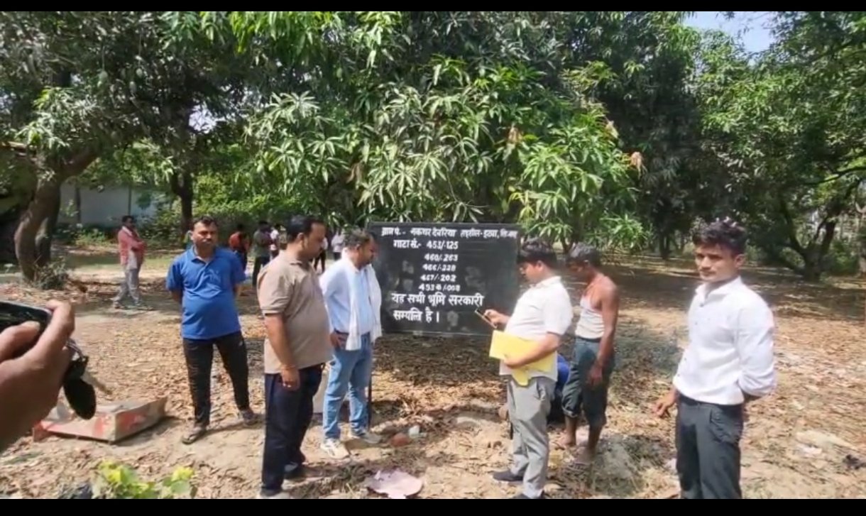 सिद्धार्थनगर: जिलाधिकारी डॉ. राजा गणपति आर. के निर्देश पर आज इटवा तहसील के ग्राम नकथर देवरिया में राजस्व विभाग की टीम ने सख्त कार्रवाई करते हुए पांच गाटा संख्याओं की नाप कर उस पर सरकारी ज़मीन होने का बोर्ड लगा दिया। यह कार्यवाही तहसीलदार व नायब तहसीलदार की अध्यक्षता में की गई।