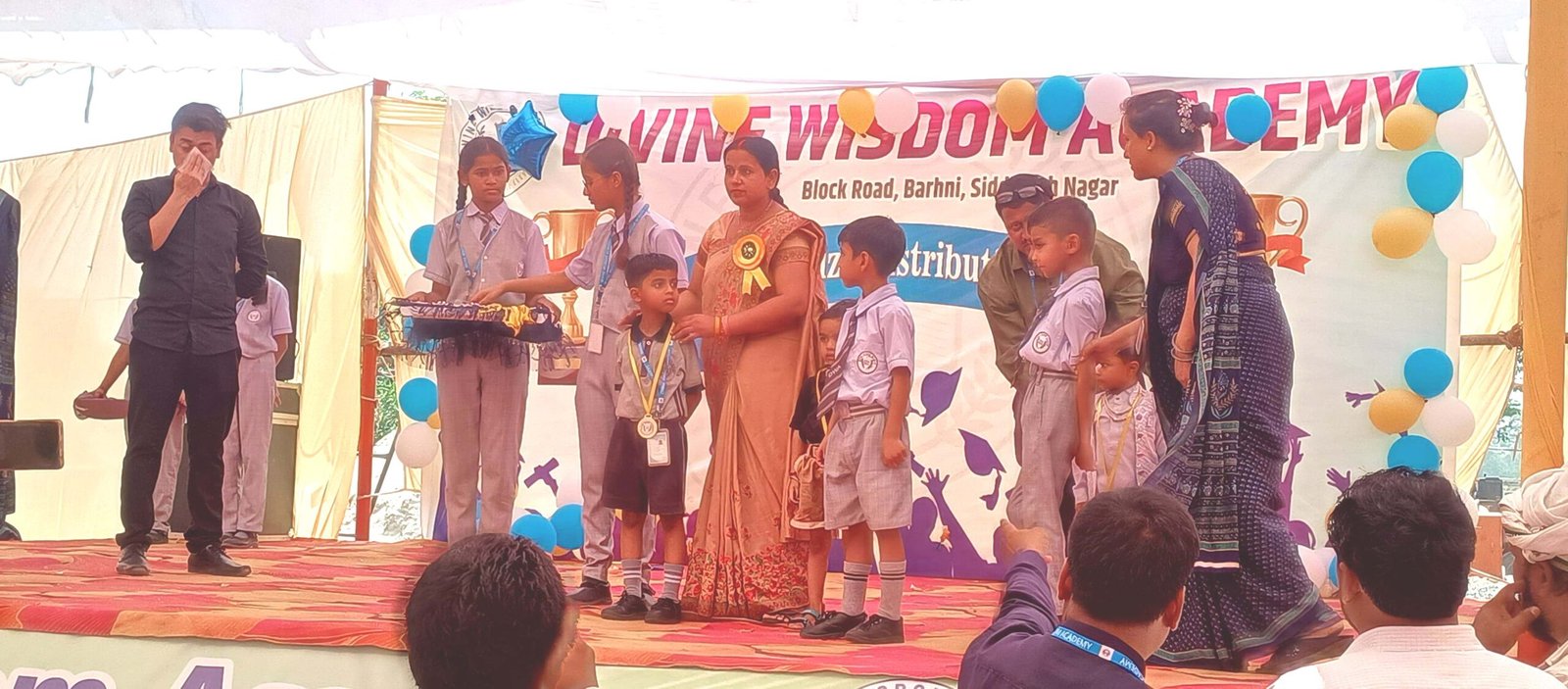 ब्लॉक रोड स्थित डिवाइन विजडम एकेडमी, बढ़नी में गुरुवार को आयोजित वार्षिक पुरस्कार वितरण समारोह में विद्यालय में अध्ययनरत बच्चों को उनकी शैक्षणिक उपलब्धियों एवं विविध गतिविधियों में उत्कृष्ट प्रदर्शन के लिए प्रशस्ति पत्र व मेडल देकर सम्मानित किया गया।