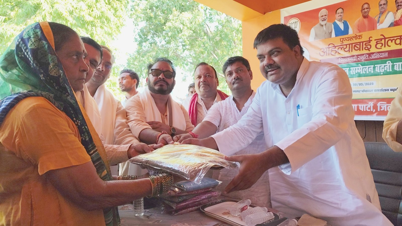 नगर पंचायत की ओर से सभी आगंतुकों को स्मृति चिन्ह और प्रसाद वितरित किया गया। वहीं महिला शक्ति को गर्व का अहसास कराने के लिए उन्हें साड़ी भेंट की गई।