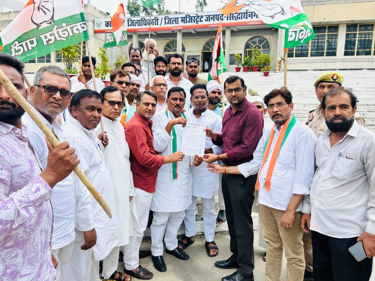 प्रदेश सरकार द्वारा 5000 प्राइमरी और जूनियर विद्यालयों के विलय के फैसले के विरोध में आज सिद्धार्थनगर में कांग्रेस कार्यकर्ताओं ने जोरदार प्रदर्शन किया। जिला कांग्रेस अध्यक्ष काजी सुहेल अहमद के नेतृत्व में कार्यकर्ताओं ने जिलाधिकारी कार्यालय पर प्रदर्शन कर महामहिम राज्यपाल को संबोधित ज्ञापन उप जिलाधिकारी सदर को सौंपा।