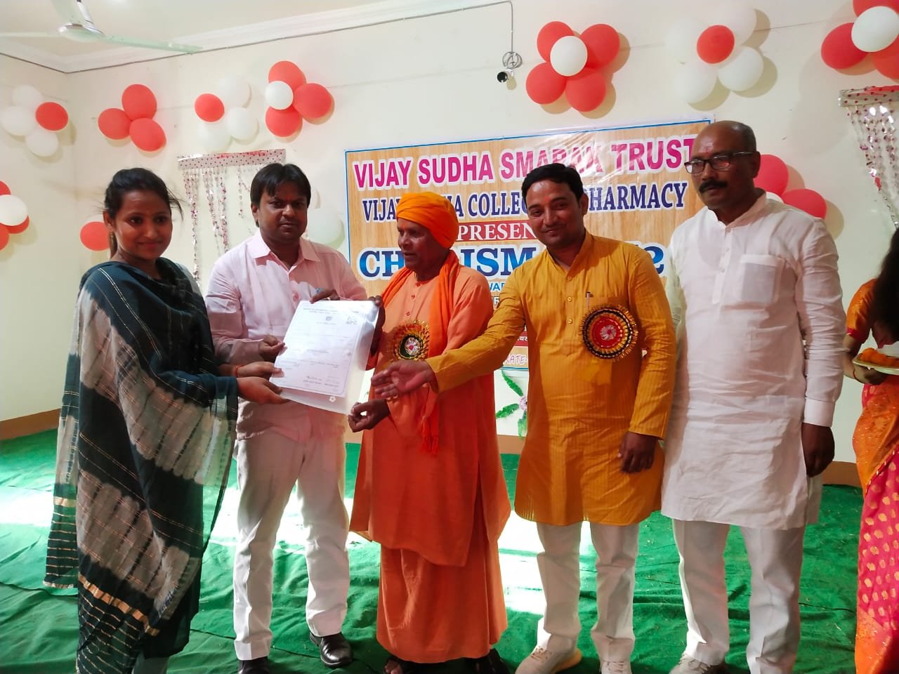 सिद्धार्थनगर। विजय सुधा कॉलेज ऑफ फार्मेसी द्वारा शनिवार को करिश्मा 2k22 कार्यक्रम का आयोजन कर छात्र अभिवादन, प्रमाण पत्र वितरण साथ ही विदाई समारोह का आयोजन किया गया। छात्रो को मुख्य अतिथि सदर विधायक श्यामधनी रही द्वारा प्रमाण पत्र प्रदान कर उन्हें उत्साहवर्धन किया गया।