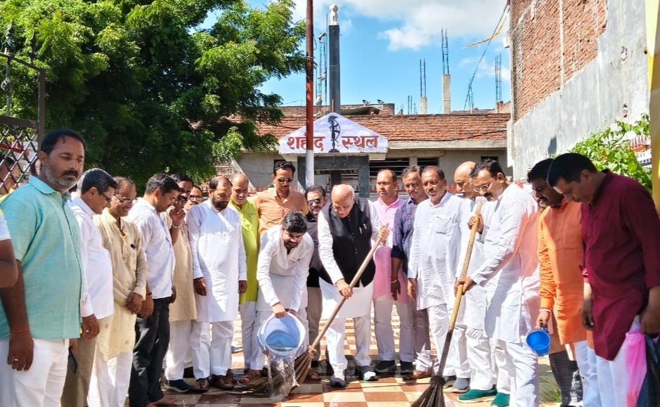 शोहरतगढ़ में बुधई राम शहीद स्मारक की साफ-सफाई कर पुष्पांजलि अर्पित, परिजनों को किया सम्मानित