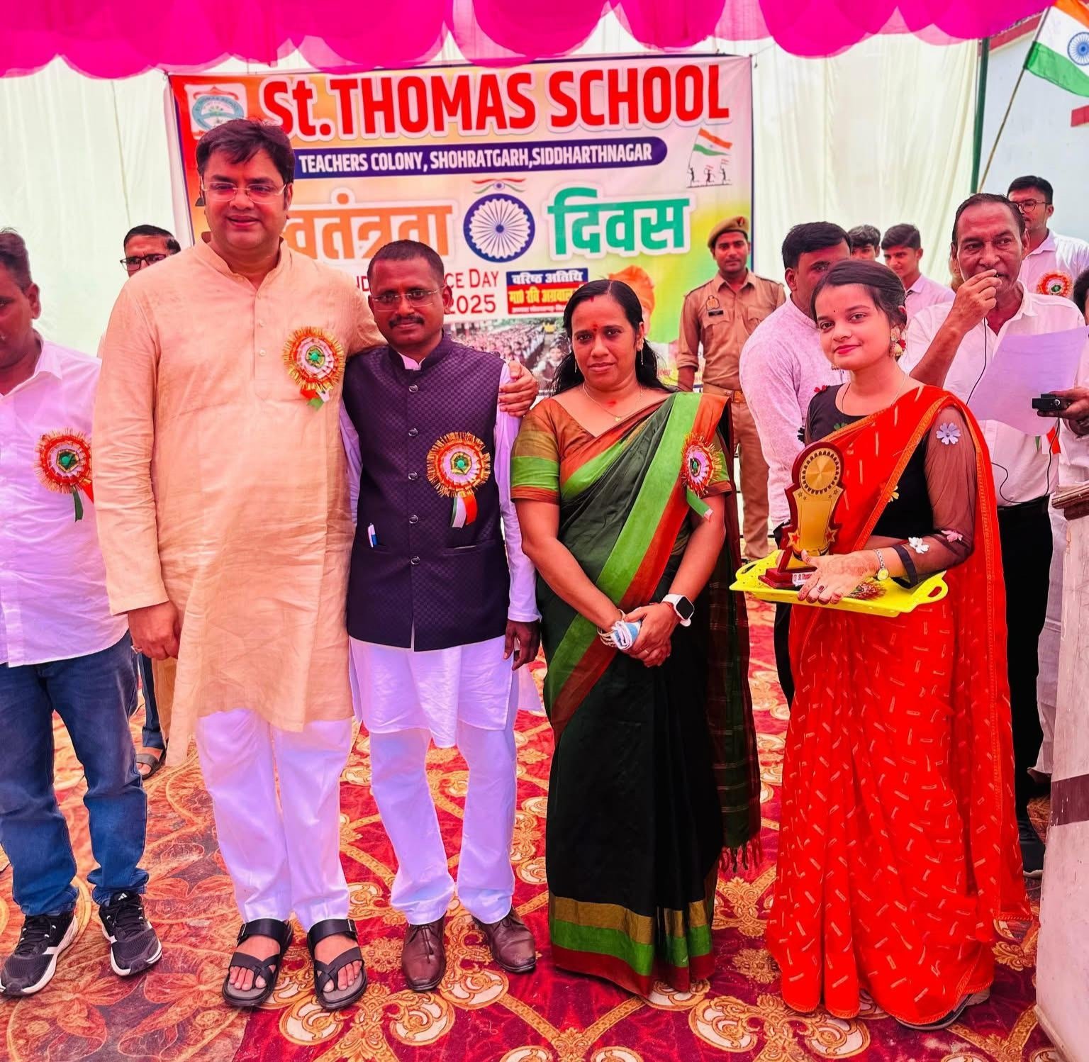 इस अवसर पर विधायक ने हिंदुस्तान अखबार की ओर से आयोजित ओलिंपियाड परीक्षा में सफल हुए सेंट थॉमस स्कूल के पांच बच्चों — पीयूष चौरसिया, बुशरा, पीयूष विश्वास, आदित्य जायसवाल व अरमान खान — को चेक, मेडल और प्रमाणपत्र प्रदान कर सम्मानित किया।