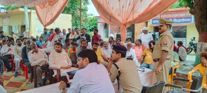 आगामी दुर्गा पूजा पर्व को शांतिपूर्ण और सौहार्दपूर्ण वातावरण में संपन्न कराने के उद्देश्य से पीस कमेटी की बैठक आयोजित की गई। यह बैठक उप जिलाधिकारी कल्याण सिंह मौर्य और पुलिस क्षेत्राधिकारी (आईपीएस)विश्वजीत सौरयान की अध्यक्षता में थाना सिद्धार्थनगर परिसर में संपन्न हुई।