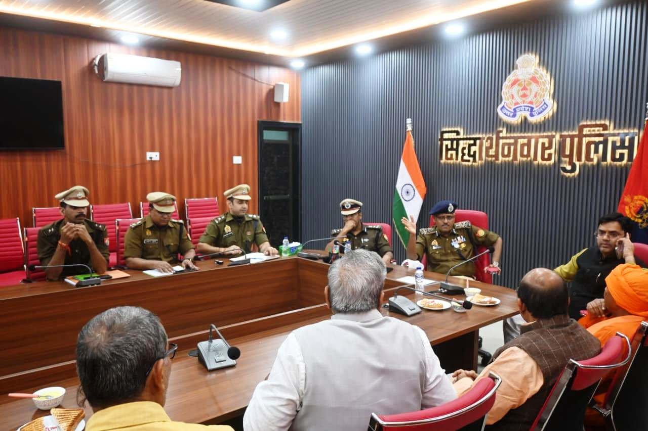 कानून-व्यवस्था को और अधिक सुदृढ़ बनाने तथा पुलिस-जन सहयोग को बढ़ावा देने के उद्देश्य से, अपर पुलिस महानिदेशक (ADG) गोरखपुर जोन, श्री मुथा अशोक जैन ने आज सिद्धार्थनगर में एक महत्वपूर्ण बैठक आयोजित की। यह भेंटवार्ता पुलिस लाइन सभागार कक्ष में सम्पन्न हुई, जिसमें पुलिस उपमहानिरीक्षक (DIG) बस्ती परिक्षेत्र, श्री संजीव त्यागी तथा पुलिस अधीक्षक (SP) सिद्धार्थनगर, डॉ. अभिषेक महाजन भी उपस्थित रहे।