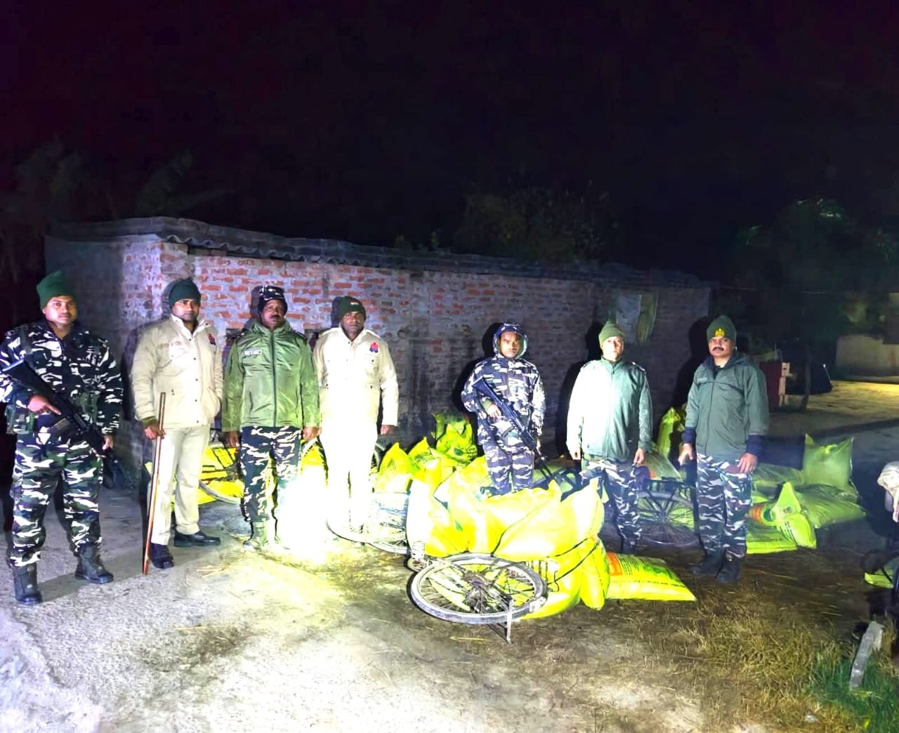 सुरक्षा बलों के पहुंचने से पहले ही तस्कर मौके से भागने में सफल रहे। छापेमारी के दौरान टीम को: सड़क किनारे खड़ी 4 साइकिलें मिलीं, जिन पर खाद लदी हुई थी।