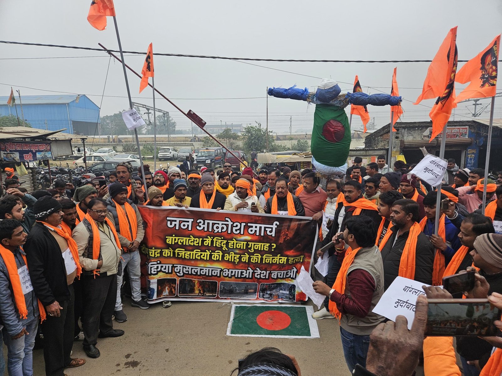 सिद्धार्थनगर (बढ़नी): पड़ोसी देश बांग्लादेश में हिंदू अल्पसंख्यकों के खिलाफ जारी हिंसा थमने का नाम नहीं ले रही है। हाल ही में मैमनसिंह शहर में एक हिंदू युवक की बर्बर हत्या के बाद जनपद के सीमावर्ती कस्बे बढ़नी में भारी विरोध प्रदर्शन हुआ। नगर पंचायत अध्यक्ष सुनील अग्रहरि के नेतृत्व में सैकड़ों नागरिकों ने जनआक्रोश रैली निकालकर अपना कड़ा विरोध दर्ज कराया।
