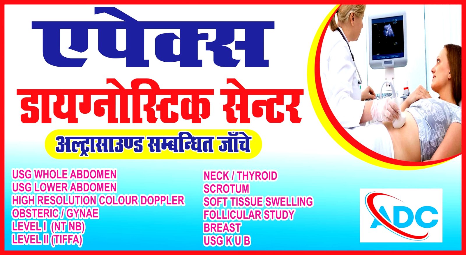 * अल्ट्रासाउंड की समस्त सेवाएं: पेट, स्त्री रोग, गर्भावस्था, थायराइड, स्तन, गले व आंख की जांच के साथ-साथ ऊतकों में सूजन की पहचान।