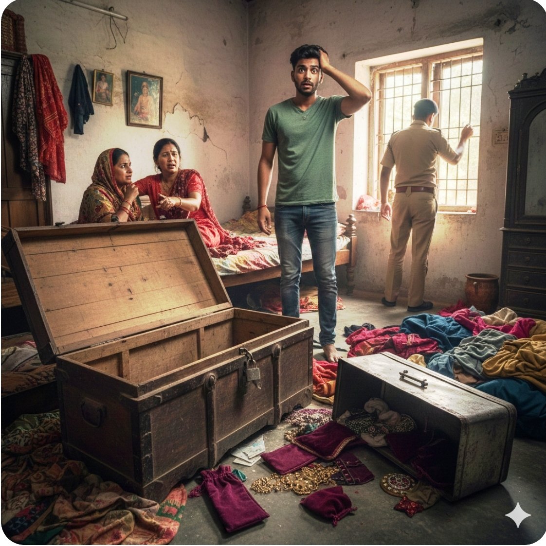 बुधवार सुबह जब अनीश कमरे के अंदर गया, तो ताले टूटे देख उसके होश उड़ गए। चोरों ने बक्से का ताला तोड़कर उसमें रखे लगभग ढाई किलो चांदी और 70 ग्राम सोने के आभूषण चोरी कर लिए थे। पीड़ित परिवार के अनुसार चोरी गए जेवरों की कीमत लाखों में है।