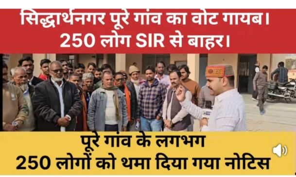 सिद्धार्थनगर/उस्का बाजार: सदर तहसील के ग्राम रसूलपुर और उस्का बाजार नगर पंचायत में निर्वाचन आयोग द्वारा जारी SIR (Statistical Information Report) नोटिस ने ग्रामीणों की धड़कनें बढ़ा दी हैं। रसूलपुर के लगभग 250 ग्रामीणों को यह नोटिस मिलने के बाद पूरे गांव में चिंता का माहौल व्याप्त हो गया। इस समस्या को लेकर ग्रामीणों ने तहसील मुख्यालय पहुंचकर सदर तहसीलदार देवेन्द्र मणि त्रिपाठी को ज्ञापन सौंपा और अपनी आपत्तियां दर्ज कराईं।