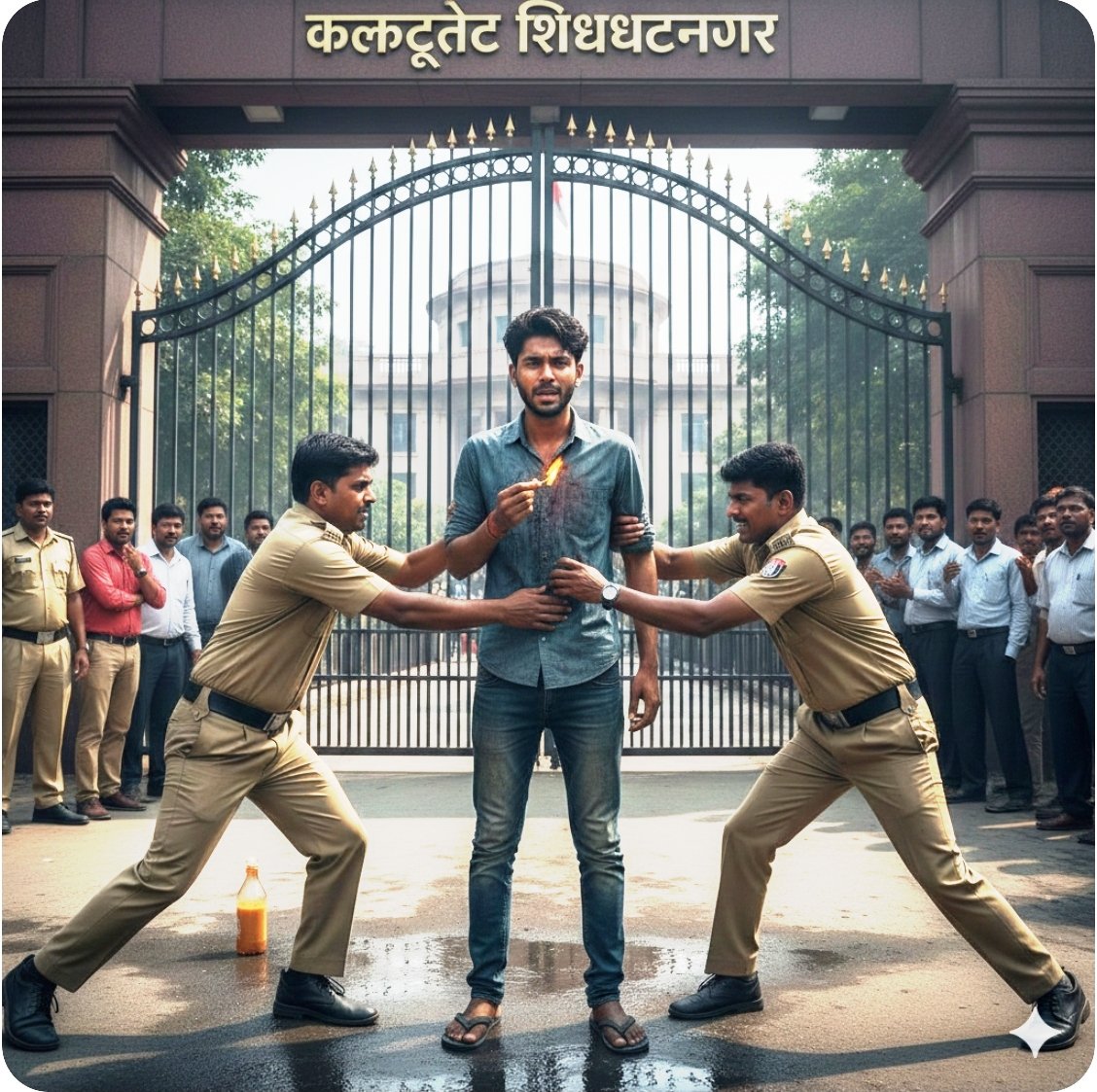 सिद्धार्थनगर: पुलिस की कार्यशैली से क्षुब्ध होकर युवक ने कलेक्ट्रेट गेट पर किया आत्मदाह का प्रयास