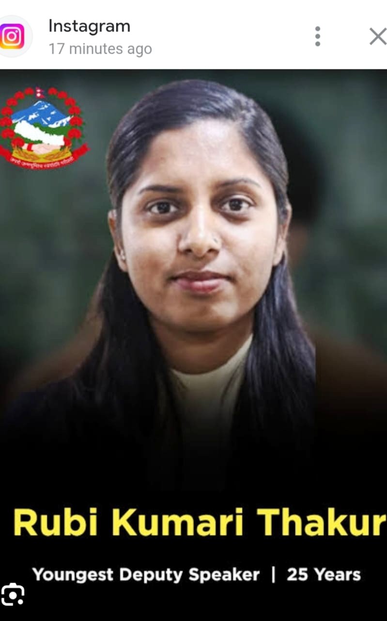 नेपाल की राजनीति में एक नया अध्याय जुड़ गया है। पड़ोसी मित्र राष्ट्र नेपाल की प्रतिनिधि सभा (निचले सदन) के उपसभामुख पद पर रुबी कुमारी ठाकुर निर्वाचित हुई हैं। श्रम संस्कृति पार्टी की सांसद रुबी को राष्ट्रिय स्वतन्त्र पार्टी (RSP) और सत्ता पक्ष के अन्य दलों का पुरजोर समर्थन प्राप्त हुआ।