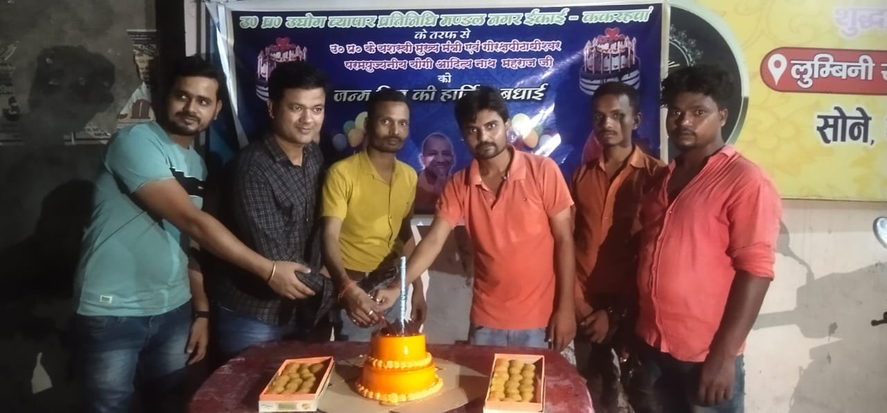 सिद्धार्थनगर। व्यापार मण्डल ककरहवा की इकाई ने केक काटकर मुख्यमंत्री योगी आदित्यनाथ का जन्म दिन मनाया।