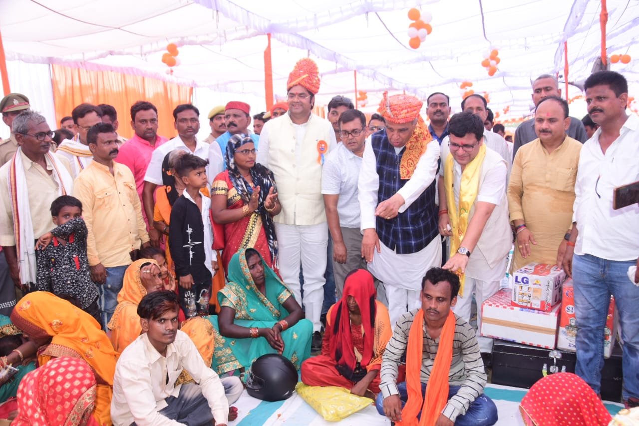 सिद्धार्थनगर। मुख्यमंत्री सामूहिक विवाह में 198 जोड़ों ने सात फेरे लेकर एक दूसरे का साथ निभाने की कसम खाई तो वही 29 मुस्लिम जोड़ो का विवाह भी उनके इस्लाम धर्म के अनुसार मौलाना द्वारा कराया गया।कार्यक्रम के मुख्य अतिथि योगी सरकार के आबकारी एवं मद्य निषेध मंत्री नितिन अग्रवाल, सांसद जगदम्बिकापाल, शोहरतगढ़ के विधायक विनय वर्मा, जिलाधिकारी संजीव रंजन, पुलिस अधीक्षक डॉ.यशबीर सिंह, मुख्य विकास अधिकारी पुलकित गर्ग ने सभी जोड़ों को आर्शीवाद दिया। मुख्य अतिथि योगी सरकार के आबकारी मंत्री नितिन अग्रवाल ने कहा कि लड़की पैदा होने पर अक्सर आम आदमी के मन में यह धारणा रहती है कि बेटी को कैसे पढ़ायेंगे? बेटी की शादी कैसे करेंगे, यह चिन्ता बनी रहती है। ऐसे परिवार को अब चिंता करने की जरूरत नही है,क्योकि सभी गरीब परिवार के बेटियों की शादी करने का जिम्मा योगी सरकार ने उठा लिया है, अब किसी भी गरीब मां बाप को बेटी की शादी के लिए जमीन व जेवरात नही बेचने पड़ेंगे। मुख्यमंत्री योगी आदित्यनाथ ने धारणा को बदल दिया है। यूपी सरकार “सबका साथ सबका विकास” के आधार पर कार्य कर रही है।
