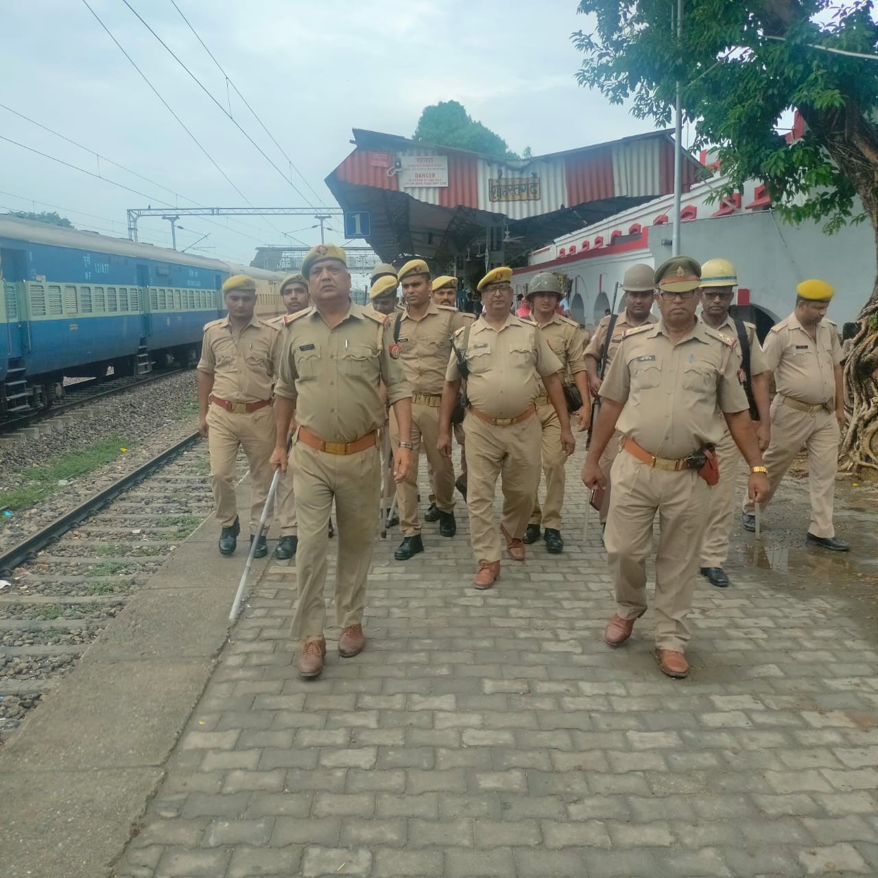 देश के विभिन्न हिस्सों में अग्निपथ योजना को लेकर विरोध प्रदर्शन को ध्यान में रखते हुए कस्बे के रेलवे स्टेशन,पुलिस पिकेट,मुख्य बाजार, चौराहों और व्यस्तम स्थानों पर पुलिस जवान मार्च करते दिखे।