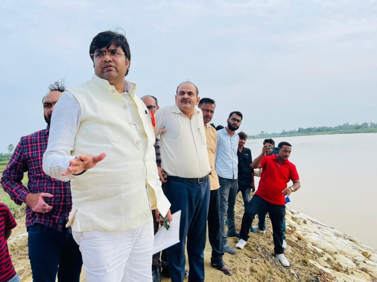 और कहीं भी तटबंध की मरम्मत की जरूरत हो तो तत्काल प्रभाव से उसे करवाये जिससे जनता बाढ़ से परेशान ना हो हमारे शोहरतगढ़ विधानसभा में नेपाल से कई नदियां निकली हुई है जिससे हर साल बाढ़ का तांडव विधानसभा शोहरतगढ़ में दिखाई देता है हम हर हाल में हमेशा अपने विधानसभा की जनता के प्रति 24 घंटे तत्पर रहता हूं कि जिस जनता ने मेरे ऊपर विश्वास जताया है उस पर मैं खरा उतरू विधायक विनय वर्मा ने डेर्नेज खंड सिद्धार्थनगर के अधिशासी अभियंता अशोक मेहरा के साथ बन्धो निरीक्षण किए उनके साथ सिचाई विभाग के एक्सियन अशोक मेहरा जेई बान गंगा बैराज अभिजीत सिंह , मोहम्मद दानिश, समाज सेवी रवि अग्रवाल सनी उपाध्याय विष्णु संजय कसौधान आदि उपस्थित रहे।