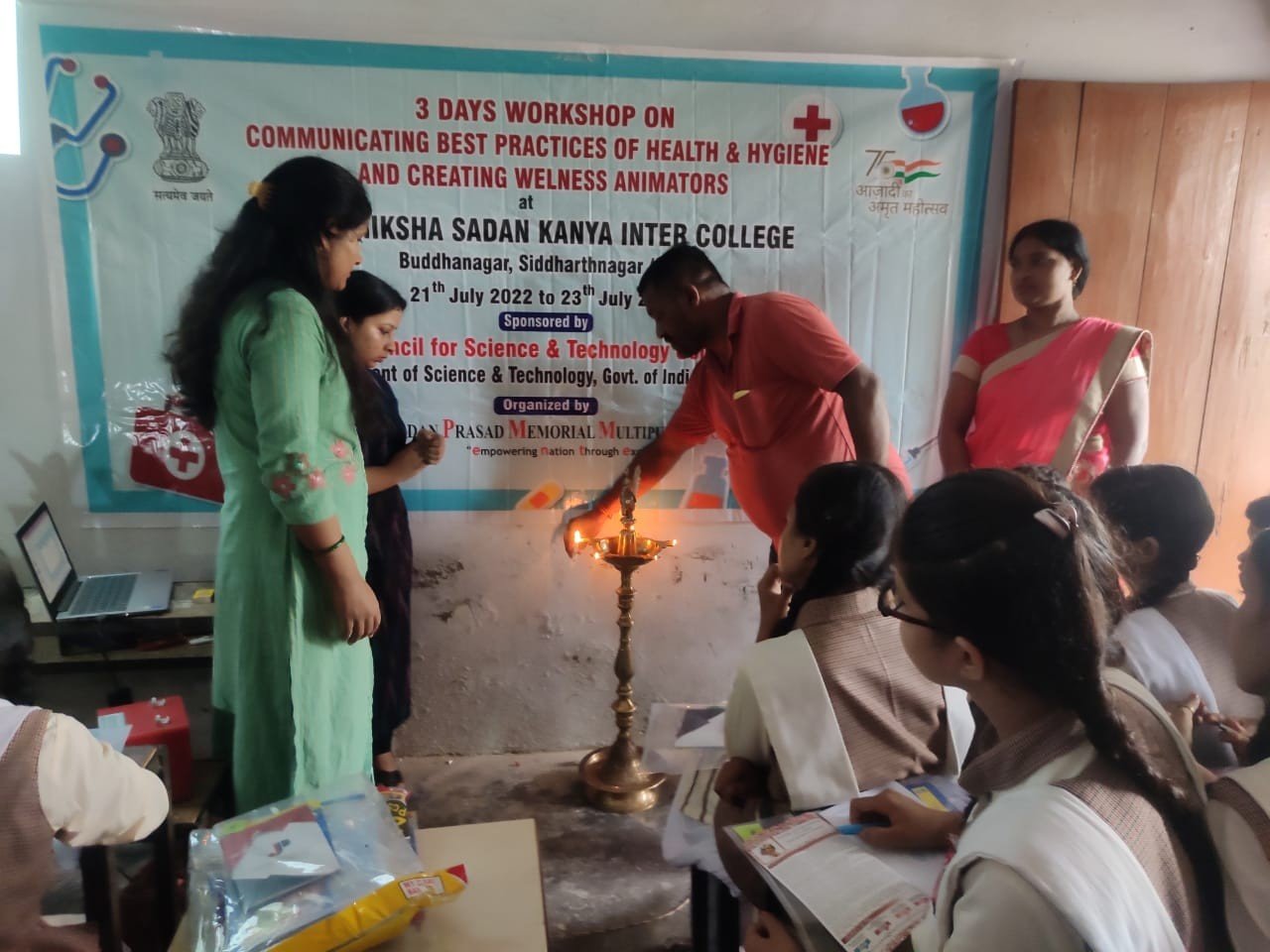 सिद्धार्थनगर। बाल शिक्षा सदन कन्या इन्टर कॉलेज बुद्धानगर सिद्धार्थनगर में स्वास्थ्य एवं स्वच्छता के तीन दिवसीय प्रशिक्षण विज्ञानं एवं प्रौद्योगिकी विभाग भारत सरकार और जनार्दन प्रसाद मेमोरियल बहुउद्देशीय सामाजिक सेवा संस्थान उत्तर प्रदेश के संयुक्त तत्वाधान में 21 जुलाई से 23 जुलाई 2022 तक कक्षा 6 से 12 तक के 100 बच्चों के साथ जागरूकता शिविर का आयोजन प्रबन्धक दिलीप गुप्ता के द्वारा शुरू किया गया। कार्यक्रम का शुभारम्भ दिलीप गुप्ता ने दीप प्रज्वलित करके किया।
