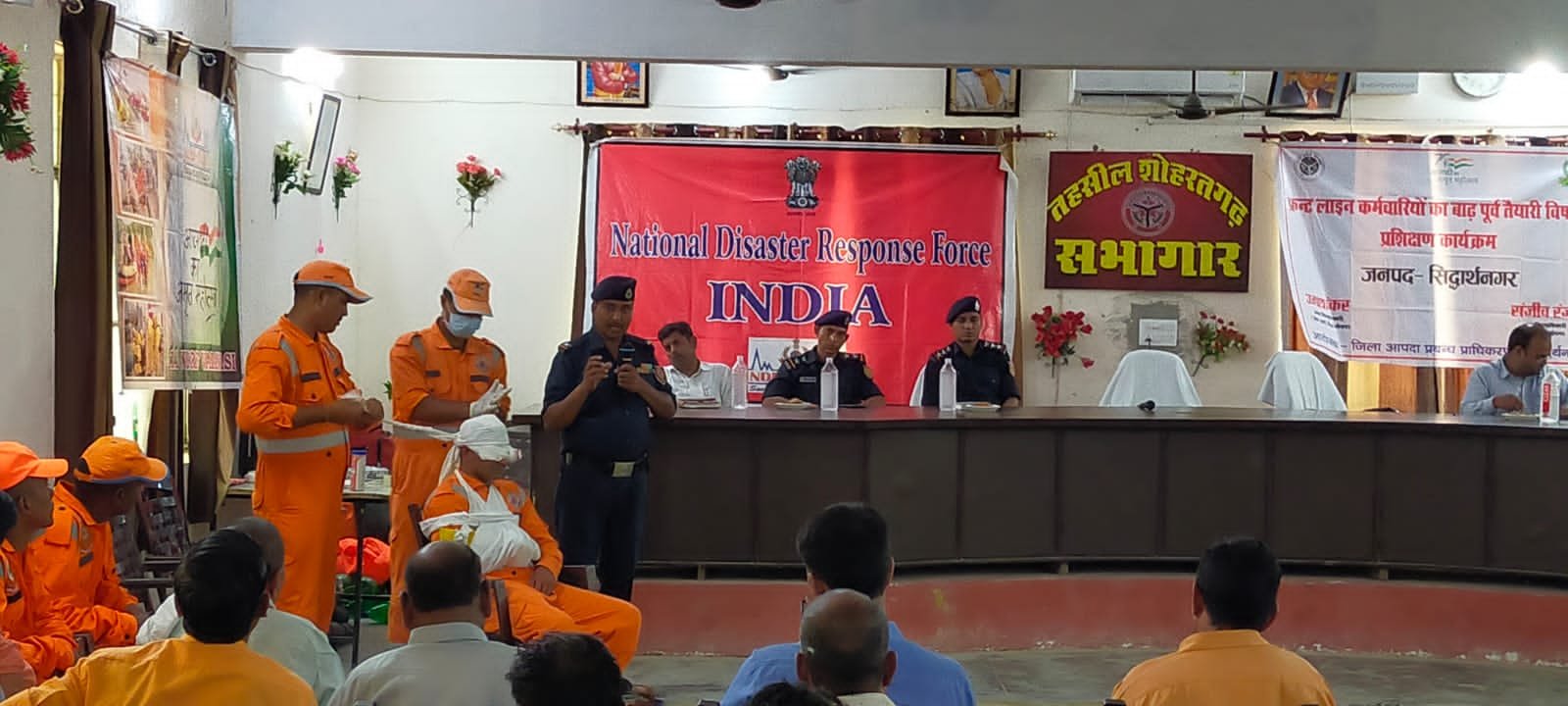 आपदा के दौरान या सामान्य जीवन में चोट लगने पर प्राथमिक उपचार जैसे ड्रेसिंग, बैंडेज, खून का बहाव रोकना, फैक्चर को स्थायित्व प्रदान करना, जीवन रक्षक सीपीआर का प्रशिक्षण, घायल व्यक्ति को एंबुलेंस या हॉस्पिटल तक ले जाने के लिए घरेलू सामानों के द्वारा स्ट्रेचर बनाने का तरीका, डूबे हुए व्यक्ति को प्राथमिक उपचार देने का तरीका, आकाशीय बिजली(दामिनी ऐप) से बचने का तरीका बताया गया| उक्त प्रशिक्षण में राजेश प्रताप सिंह तहसीलदार शोहरतगढ़ गौरव कुमार नायब तहसीलदार अनुपम शेखर तिवारी सलाहकार आपदा प्रबंधन सिद्धार्थनगर, ग्राम पंचायत अधिकारी शिक्षक, शिक्षामित्र, प्रधान, रोजगार सेवक और लेखपाल व तहसील स्तर के अधिकारी व कर्मचारी शामिल रहे।