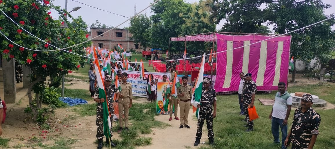 एसएसबी 50वीं वाहिनी के जवानों और पं.बाबूराम शुक्ल विद्या मन्दिर इंटर कॉलेज के छात्र-छात्राओं ने हर घर तिरंगा अभियान के प्रति जागरूकता के लिए बढ़नी ब्लाक के तुलसियापुर चौराहे में रैली निकालकर लोगों से 15 अगस्त को अपने मकानों की छतों पर राष्ट्रीय ध्वज फहराने की अपील की।इस दौरान विद्यालय परिसर में छात्र-छात्राओं के द्वारा सांस्कृतिक कार्यक्रम भी किया गया।इस दौरान एसएसबी 50वीं वाहिनी के डिप्टी कमांडेंट दीपक सिंह जावरा ने कहा कि जनसामान्य में देशभक्ति की भावना जागृत करने के लिए देश भर में 13 अगस्त से 17 अगस्त की अवधि तक हर घर तिरंगा अभियान का क्रियान्वयन किया जाएगा। इस अवधि में क्षेत्र के प्रत्येक घर में राष्ट्रीय ध्वज फहराया जाएगा। इस मुहिम के प्रति जागरूकता के लिए इस कार्यक्रम का आयोजन किया गया है। कॉलेज से शुरू हुई रैली ने चौराहे के मुख्य बाजार, बड़ौदा ग्रामीण बैंक, भारतीय स्टेट बैंक होते हुए विद्यालय पर आकर समाप्त हो गया।रैली में शामिल छात्राओं ने हाथों में तिरंगा लेकर भारत माता की जय का उद्घोष कर क्षेत्रवासियों से 13 से 17 अगस्त की अवधि तक घर घर राष्ट्रीय ध्वज फहराने की अपील की। मुख्य अतिथि बसावन पाकर उर्फ मदरहिया के ग्रामप्रधान गुलाम रसूल ने कहा कि इस वर्ष देश आजादी के 75 वर्ष पूरे कर रहा। ये दिन भारत के सभी नागरिकों के लिए बहुत ही खास है। इसलिए देश के सभी नागरिकों को आजादी का जश्न मनाने के लिए हर घर तिरंगा अभियान में शामिल होने का आग्रह किया गया है। इस दौरान प्रधानाचार्य रवि शुक्ल,एसएसबी के सत्येन्द्र कुमार,कमलेश हलदर, अर्जुन विश्वास, प्रधान बसंतपुर इमरान अहमद, प्रधान खैरी शीतल प्रसाद शिवकुमार साहनी, प्रधान प्रतिनिधि मानपुर राजेश चौरसिया, प्रबंध समिति के अध्यक्ष मयंक शुक्ल,बीडीसी नीलेश साहनी, आशाराम यादव,दीक्षा शुक्ला,नेहा अग्रहरि, धन्नजय पाठक, जितेन्द्र शुक्ल, सुमेरु गिरी, रामकिशोर,संतप्रसाद, बालगोविंद,प्रदीप मौर्य,साधना श्रीवास्तवा, विश्वनाथ यादव आदि मौजूद थे।