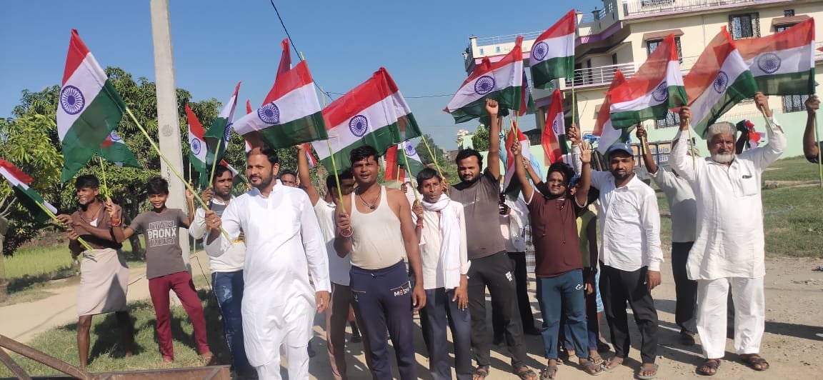 सिद्धार्थनगर: आजादी का 75वा अमृत महोत्सव के तहत ग्राम बनगवां विकासखंड जोगिया अंतर्गत ग्राम प्रधान की अध्यक्षता में तिरंगा रैली निकालकर हर घर तिरंगा लगाने के लिए आम जनमानस को जागरूक किया गया इस दौरान ग्राम प्रधान महबूब खान ने बताया कि आज हमारे देश में आजादी का 75वा अमृत महोत्सव मनाया जा रहा है जिसके तहत रैली निकाली गई है जिसमें हम सभी ग्रामवासी एकजुट होकर यह त्यौहार बड़ी ही हर्षोल्लास के साथ मनाएंगे और घर-घर तिरंगा लहराएंगे इस दौरान ग्राम प्रधान महबूब खान और गांव के प्रधान सहायक फरहाद अली सहित गांव के लोग मौजूद रहे ।