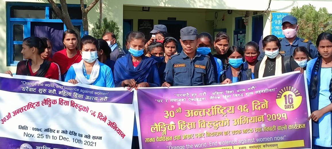 पड़ोसी देश नेपाल के कपिलवस्तु जिले के यशोधरा गाँव पालिका के अन्तर्गत मर्यादपुर क्षेत्र मे लैंगिक हिंसा के विरुद्ध 16 दिवसीय जन जागरुकता कार्यक्रम के क्रम में शान्ति पुनस्थापना गृह प्रमुख सुनीता केसी व कल्पना के नेतृत्व मे रैली के माध्यम से जागरूकता अभियान चलाया गया।शान्ति पुनस्थापना गृह(मर्यादपुर)नेपाल के सुनीता केसी द्धारा लैंगिक हिंसा के विरुद्ध जागरुकता रैली अभियान छात्रों के माध्यम से मर्यादपुर चौक,वार्ड, गांव पालिका, नगर पालिका क्षेत्र में प्रशिक्षण,गोष्ठी,पोस्टर आदि के माध्यम से लैंगिक हिंसा के बारे में बताया गया। लैंगिक हिंसा की घटना के बाद समाज में प्रतिक्रिया देने वालों के दो वर्ग हो जाते हैं ।पहला शोषित के पक्ष व दूसरा शोषक पक्ष। किन्तु नेपाल जैसे देश में पितृ सत्तात्मक समाज में हिन्सा के रूप में थोड़ी भिन्नता है।जैसे कन्या भ्रूण हत्या,बालिका यौन शोषण,बेटी-बेटा में दोयम ब्यवहार,दहेज उत्पीड़न, असुरक्षित गर्भपात,घरेलू हिंसा,बहु विवाह,कार्य स्थल पर यौन शोषण, यौन उत्पीड़न एवं तस्करी अनैतिक देह व्यापार, आनर किलिंग ,गैंगरेप, ऐसिड अटैक,डेटिंग दुरुपयोग, पत्नी से बलात्कार,जबरन वेश्यावृत्ति,पोर्नोग्राफी आदि लैंगिक हिंसा की कतार में शामिल हैं।आने वाली युवा पीढ़ी को इसके प्रति जागरुक करना हमारे देश के हर नागरिक की जिम्मेदारी है।इस दौरान शान्ति पुनस्थापना गृह के वॉलिंटियर कल्पना ने विस्तार से लैंगिक हिंसा के बारे में कहा कि लैंगिक हिंसा की घटना के बाद समाज में प्रतिक्रिया देने वालों के दो वर्ग के होते हैं।इस दौरान प्रहरी चौकी मर्यादपुर के प्रभारी मोहम्मद तकी खान,सुनीता केसी, कल्पना,माधुरी श्रेष्ठ, मिथुला शर्मा, जुनू शाही,लक्ष्मी कार्की श्रेष्ठ, किशन प्रसाद पाण्डेय, विंदवासनी हरिजन, रामानंद पाण्डेय, उमाशंकर उपाध्याय, मनीष उपाध्याय आदि मौजूद रहे।