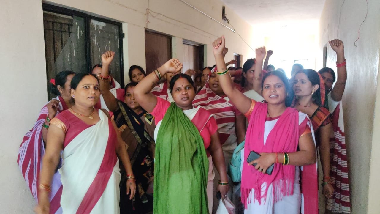 बकाया भुगतान को लेकर आशा कार्यकर्ताओं ने किया प्रदर्शन अधीक्षक पर लगाये आरोप