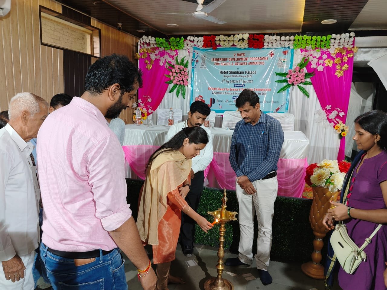 सिद्धार्थनगर। स्वास्थ्य एवं स्वच्छता के दो दिवसीय नेतृत्व विकास प्रशिक्षण, विज्ञानं एवं प्रौद्योगिकी विभाग, भारत सरकार और जनार्दन प्रसाद मेमोरियल बहुउद्देशीय सामाजिक सेवा संस्थान, उत्तर प्रदेश के संयुक्त तत्वाधान में 8 सितंबर से 9 सितंबर 2022 तक कराया जाएगा। यह प्रशिक्षण में सिद्धार्थनगर जिले के दस स्कूल से 121 छात्र छात्राएँ प्रतिभाग कर रहे है। कार्यक्रम का शुभारम्भ मुखय अतिथि डॉक्टर विजय कुमार श्रीवास्तव एवं डॉक्टर नीलम जयसवाल ने दीप प्रज्वलित करके किया।