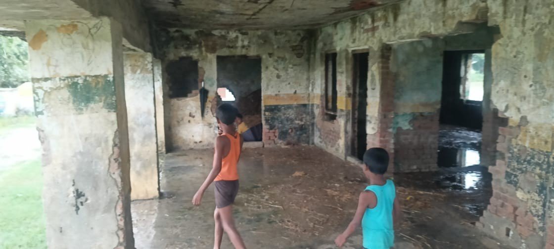 जर्जर विद्यालय में पढ़ाई के बाद भी गांव के बच्चे जाते हैं खेलने कूदने जर्जर विद्यालय कभी भी बड़ी घटना को दे सकता है दावत