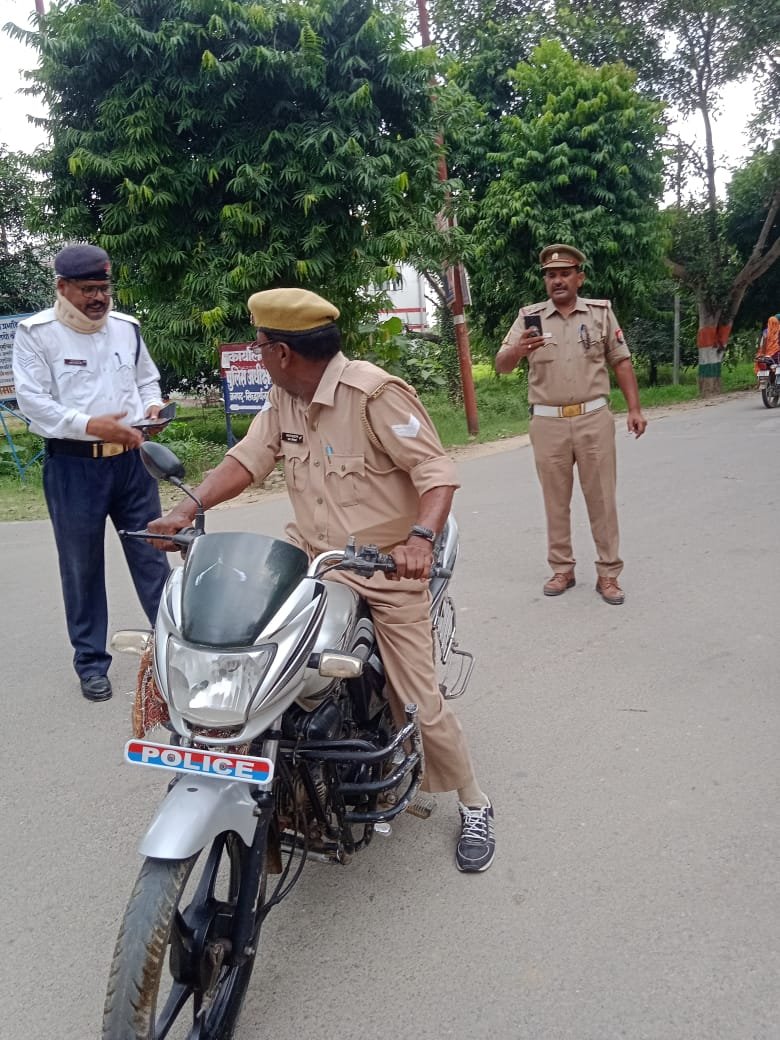 अमित कुमार आनन्द, पुलिस अधीक्षक सिद्धार्थनगर के द्वारा दिये गये आदेश बिना हेलमेट, बिना नम्बर प्लेट व तीन सवारी बिठाने तथा यातायात नियमों का उल्लंघन कर वाहन चलाने वाले पुलिसकर्मियों के विरुद्ध कार्यवाही किये जाने के क्रम में आज दिनांक 22.09.2022 को प्रभारी यातायात अमरेश कुमार मय यातायात पुलिस टीम द्वारा सनई तिराहा, साड़ी तिराहा, पेट्रोल पम्प तिराहा, सिद्धार्थ तिराहा, आदि स्थानों विशेष अभियान चलाकर चेकिंग गयी । चेकिंग के दौरान पुलिस अधीक्षक सिद्धार्थनगर द्वारा जारी निर्देशो का पालन करते हुये यातायात नियमों का पालन न करने वाले 04 पुलिसकर्मीयों का चालान किया गया। इसके अतिरिक्त अन्य 110 वाहनों का चालान कर 118500/-रू0 शमन शुल्क की कार्यवाही की गयी।