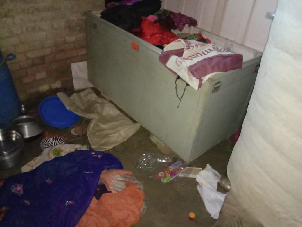 एक अदद ब्रजबाली एक तोला सोना का,मंगलसूत्र आठ आना,दो जोड़े पायल ,कपड़े से भरा बक्सा बड़ा,16000रू नकद,तथा सभी जरूरी कागजात लेकर चोर फरार हो गए, वहीं रीता पत्नी किशन के घर जेवर व नकदी तो नही था,लेकिन उसी फिराक में टैंकर का ताला तोड़कर उसमें रखा बैग कपड़े से भरा उठा ले गये, जो गांव से बाहर फेंक मिला ,जब सभी लोग वापस अपने घर लौटे, तो सब सामान तितर से बितर पाये,112नं.पुलिस क़ो सूचना दिये, पुलिस रात में ही पहुंची, तफ्तीश की और आश्वासन दिया कि शीघ्र ही घटना का खुलासा कराने की कोशिश की जाएगी।