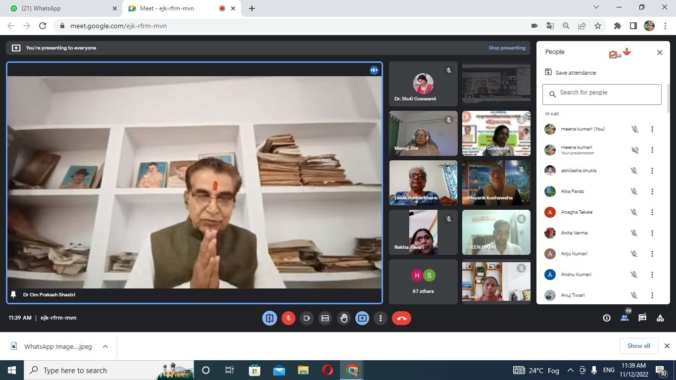 कार्यक्रम का संचालन संस्थान की प्रशिक्षिका डॉ स्तुति गोस्वामी के द्वारा किया गया। प्रशिक्षिका मीना कुमारी के द्वारा पधारे हुए समस्त अतिथियों का धन्यवाद ज्ञापित किया गया तथा प्रशिक्षिका अनीता वर्मा के द्वारा शान्ति मन्त्र किया गया। ओनलाईन माध्यम से संचालित इन कक्षाओं का निरीक्षण समन्वयक दिव्यरंजन, राधाशर्मा तथा नागेश दूबे ने किया। इस अवसर पर संस्थान के समस्त प्रशिक्षक एवं संस्थान के समस्त अधिकारी गण और भारी संख्या में प्रतिभागी उपस्थित रहें।