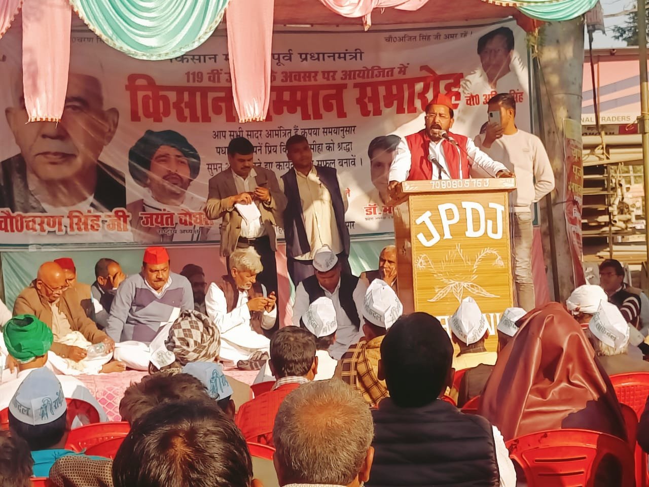 सिद्धार्थ नगर देश के पूर्व प्रधानमंत्री,किसानों के मसीहा चौधरी चरण सिंह जी की जयंती के अवसर पर विधानसभा शोहरतगढ़ तुलसियापुर चौराहे पर किसान सम्मान समारोह में जिले भर के समाजवादी पार्टी के नेता चिंतक विचारक एवम किसानों ने बढ़ चढ़कर हिस्सा लिया । किसान नेता व पूर्व प्रधानमंत्री स्वर्गीय चौधरी चरण सिंह द्वारा किसानों के लिये गए कामों की सराहना कर उन्हें याद किया गया । समाजवादी / संयुक्त मंच से उनके द्वारा खुशहाल किसान के  सपने को पूरा करने का प्रण किया गया। किसान सम्मान समारोह में राज्य सभा सांसद आलोक तिवारी ,  वरिष्ठ नेता बदरे आलम  आदि ने लोगों को संबोधित किया । नगर पालिका नौगढ़ के पूर्व चेयरमैन जमील सिद्दीकी ने चौधरी चरण सिंह के जीवन के संघर्षों पर विस्तार देते हुवे किसानों की बात रखी इस दौरान पूर्व चेयरमैन ने भारतीय जनता पार्टी की डबल इंजन की सरकार पर जमकर निशाना साधा कहा सरकार ने कर्जमाफी के नाम पर किसानों के साथ विश्वासघात किया 2 रुपये , 5 रुपये , 10 रुपये 85 रुपये किसानों का कर्ज माफ किया जिसे किसान भाइयों ने नकार दिया ऐसी कर्ज माफी को सिरे से खारिज कर दिया। गौ सेवा पर भी सवाल उठाए कहा गौ सेवक और गौशाला होने के बाद भी गायें सड़कों पर लोगों की जिंदगियों से खेल रही हैं आये दिन गाय भूख और बीमारी से मर रही है अधिकारियों पर कड़ाई की गई । लेकिन सरकार की यह योजना भी मुंह के बल गिर पड़ी । पूरे प्रदेश में किसान आवारा गायों से अपनी फसलों की रक्षा के लिए दिन हो या रात संघर्ष करते दिख रहे हैं।