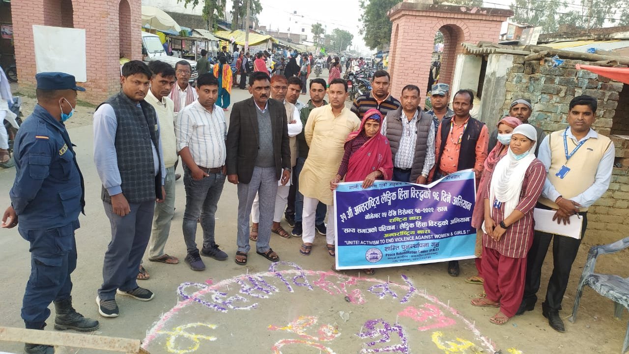 सिद्धार्थनगर। भारतीय सीमा कपिलवस्तु से सटे नेपाल के चाकर चौड़ा में पीआरसी द्वारा लैंगिक हिंसा के विरुद्ध 16 दिवसीय जागरूकता अभियान कार्यक्रम चलाया गया। जिसमें कार्यक्रम के पहले दिन वार्ड अध्यक्ष, मेयर, नेपाल प्रहरी, एपीएफ़, एसएसबी तथा क्षेत्र के महिलाओं एव नागरिकों के साथ दीप प्रज्वलित कर लैगिंक हिंसा कार्यक्रम का शुभारंभ किया गया। इस अवसर पर शांति पुनर्स्थापना गृह के चाकर चौड़ा प्रभारी राजू चौधरी ने कहा कि हम सब को लैंगिक हिंसा के विरुद्ध जागरूकता अभियान चलाकर लैंगिक हिंसा पर लगाम लगाया जा सकता है।