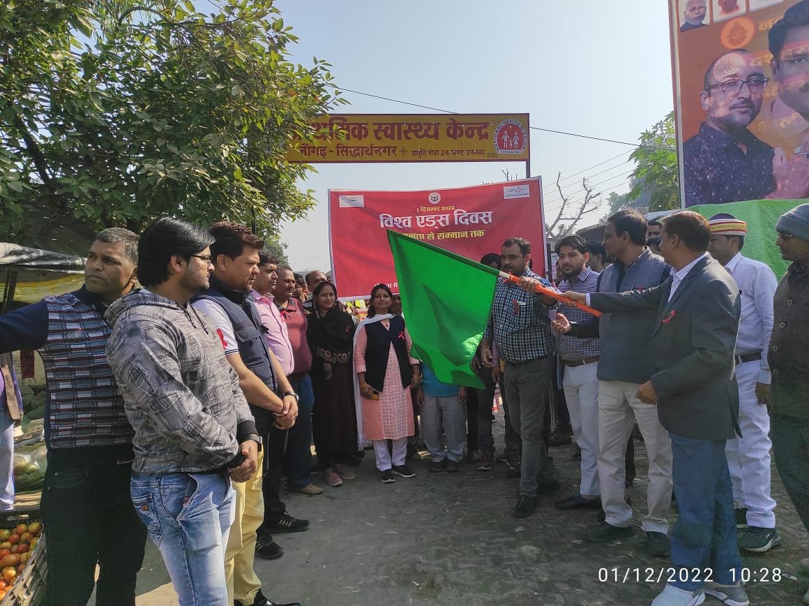 सिद्धार्थनगर। जिला एड्स नियंत्रण सोसाइटी के तत्वाधान में गुरुवार को विश्व एड्स दिवस कार्यक्रम मनाया गया। समानता से सम्मान तक थीम पर आयोजित कार्यक्रम के दौरान जनजागरूकता के लिए मुख्य चिकित्सा अधिकारी (सीएमओ) डॉ. विनोद कुमार अग्रवाल ने हरी झंडी देकर रैली को रवाना किया। इस दौरान सीएमओ ने कहा कि एड्स का एक व्यक्ति से दूसरे व्यक्ति में प्रसार सिर्फ रक्त और यौन सम्पर्क से होता है। इस बीमारी के मरीज के साथ रहने में कोई खतरा नहीं है, इसलिए एड्स मरीजों के साथ भेदभाव का बर्ताव नहीं करना चाहिए।