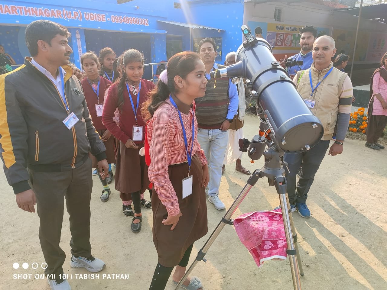 जनपद सिद्धार्थनगर के भनवापुर ब्लाक अंतर्गत पूर्व माध्यमिक हँसुड़ी औसानपुर में स्थापित विक्रम साराभाई स्पेस लैब का भ्रमण करने पहुंचे छात्र