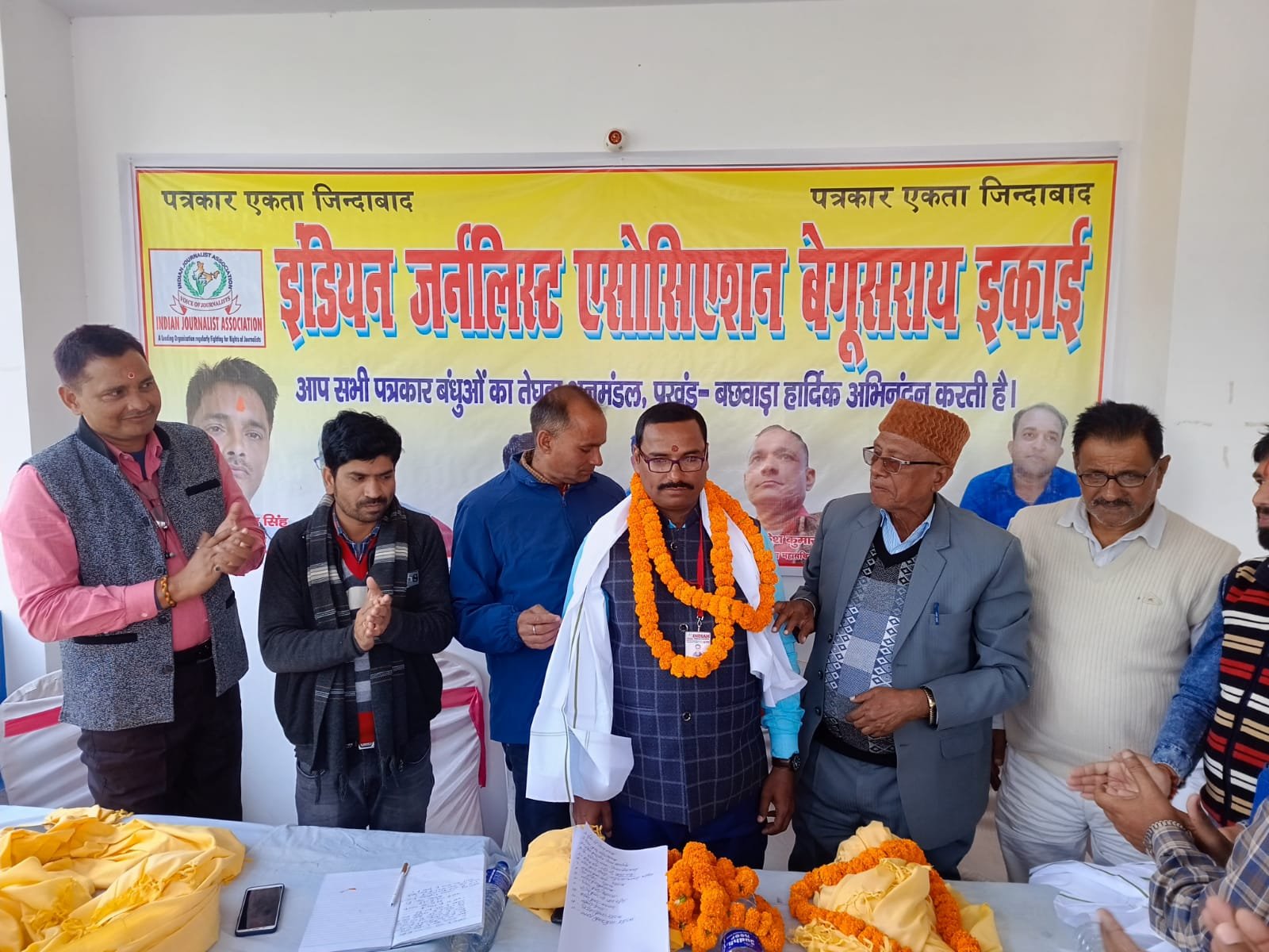 The meeting of the Indian Journalist Association cum Teghra subdivision union was held at the residence of District Secretary Nalini Ranjan. Which was presided over by District President Sumit Kumar Singh, Block President of Mansoorchak Amit Kumar. While formally inaugurating the conference, renowned litterateur, poet retired teacher Shailendra Sharma Tyagi said that journalists are the mirror of the country from the village society.