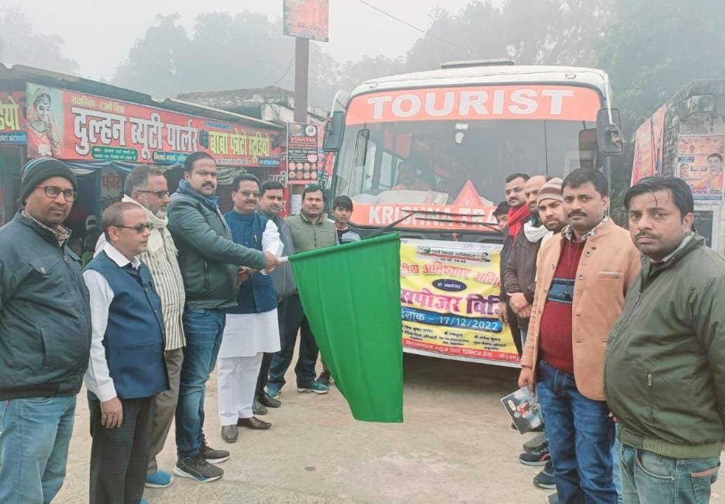 बर्डपुर,सिद्धार्थनगर। ब्लॉक संसाधन केन्द्र बर्डपुर में गत अक्तूबर माह में हुए राष्ट्रीय अविष्कार अभियान प्रतियोगिता में सफल शीर्ष पचास छात्र छत्राओं को विज्ञान के प्रति रुचि पैदा करने के उद्देश्य से गोरखपुर स्थित तारामंडल के एक्सपोजर विजिट के लिए जाने वाले बच्चों के भरी बस को खण्ड शिक्षा अधिकारी अरुण कुमार एवं पूर्व माध्यमिक शिक्षक संघ के महामंत्री कालीमुल्लाह ने बीआरसी के गेट से हरी झंडी दिखाकर रवाना किया।