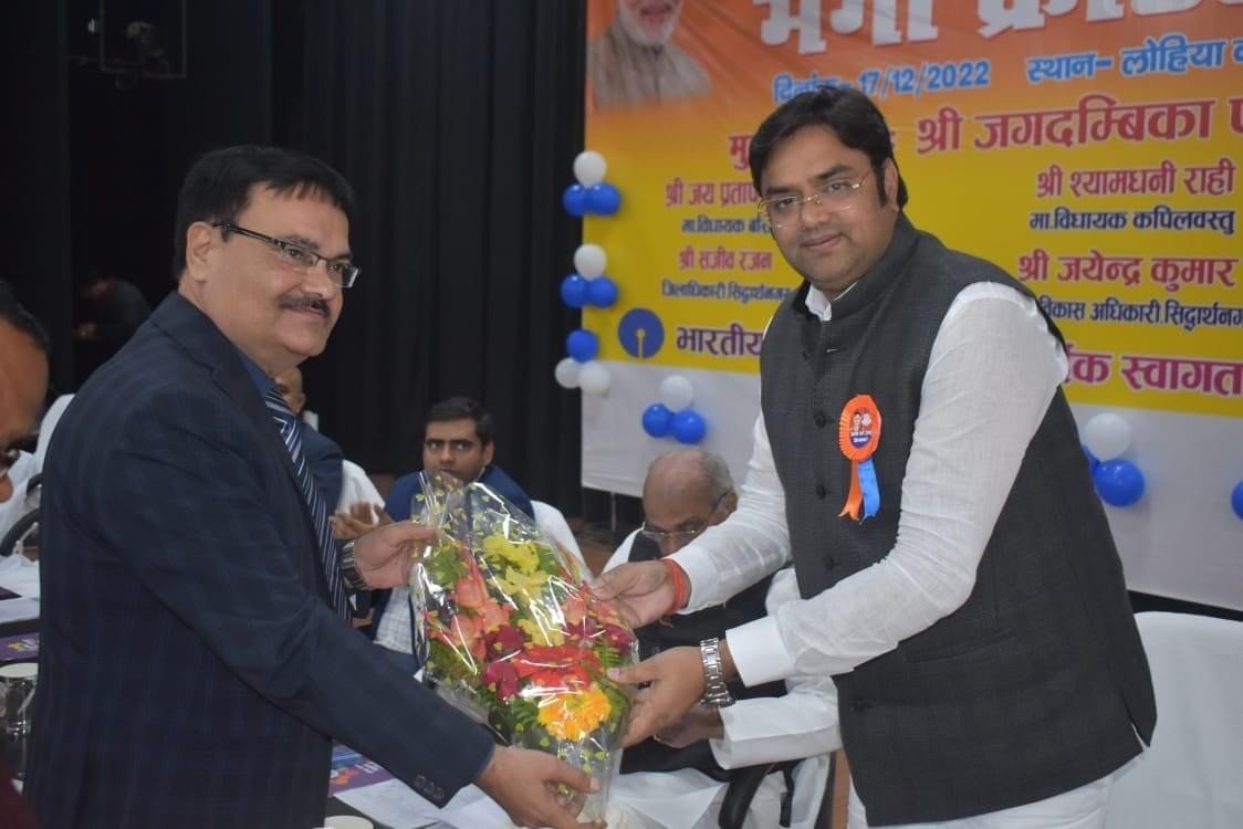 जनपद सिद्धार्थनगर अंतर्गत लोहिया कला भवन में आयोजित मेगा क्रेडिट कैंप में जिले भर की राजनितिक हस्तियों के साथ शोहरतगढ़ विधायक विनय वर्मा भी उपस्थित रहे । आयोजन कार्यक्रम की सुरुवात में अतिथियों के साथ दीप प्रज्वलित कर इस कार्यक्रम का विधिवत शुरुआत हुई । इस दौरान मुख्य अतिथि के रुप में डुमरियागंज के आदरणीय सांसद श्री जगदंबिका पाल की अध्यक्षता में मुख्य विकास अधिकारी जयेन्द्र कुमार , एसबीआई बैंक के उप महाप्रबंधक धर्मेन्द्र किशोर , क्षेत्रीय प्रबंधक एसबीआई सि० न० राहुल रंजन जी, क्षेत्रीय प्रबंधक बरोदा यूपी ग्रामीण बैंक सी डी पाण्डेय जी, डी सी एन आर एल एम श्री योगेन्द्र लाल भारती जी, सी डी एम एसबीआई रवि कुमार सिन्हा की महत्वपूर्ण उपस्थिति रही।