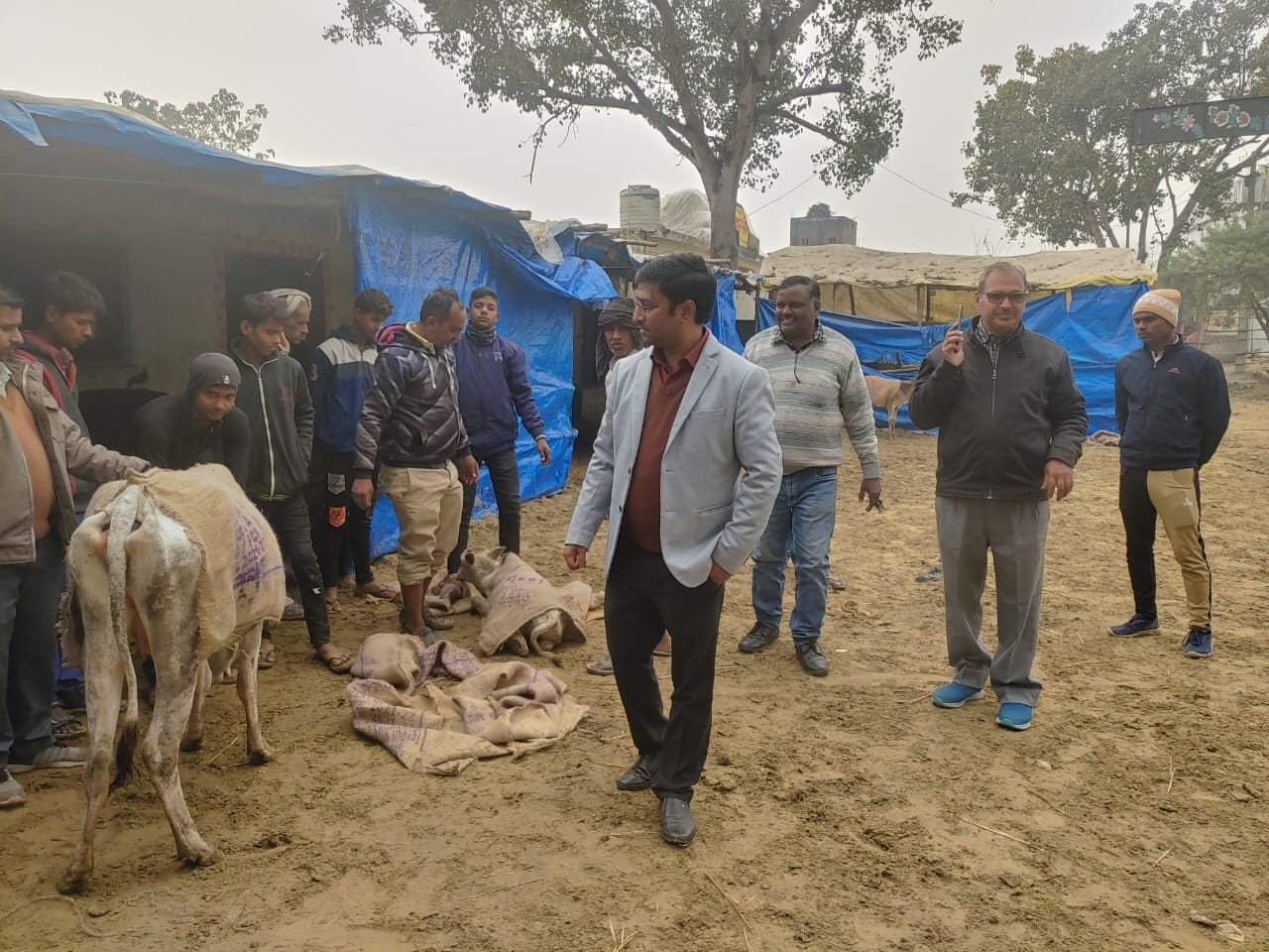 बांसी।खजुरिया गौशाला ग्राम पंचायत उसका का खंड विकास अधिकारी आंनद कुमार गुप्त व उप मुख्य पशु चिकित्सक अधिकारी डा.सीएल बर्मा ने सामूहिक निरीक्षण किया। निरीक्षण के दौरान बीडीओ ने गौशाला में अलाव जलाने ठंड से बचाव करने का निर्देश दिया। गौशाला में सभी गौवंश स्वस्थ पायें गये । केयर टेकर को निर्देशित किया गया कि अलाव जलाने एवं सेड त्रिपाल लगाकर गोवंश को जूट के बोरे से ढंकने के लिए निर्देश दिया गया। खंड विकास अधिकारी ने सचिव व ग्राम प्रधान को चारा के लिए जमीन चिह्नित कर चारे की बोवाई करने का निर्देश दिया।इसी क्रम में भगौता पुर व नगवा आस्थाई गौशाला का भी निरिक्षण किया गया।भगौता पुर गौशाला की स्थिति ठीक ठाक पाया गया। जहां मौके पर आठ केयरटेकर ठंड से बचाव के लिए गौवंश को जूट के बोरे से ढंकने का प्रयास करते पाये गये तथा ग्राम प्रधान प्रतिनिधि नन्द कुमार मोके पर ठंड से बचाव के लिए उपाय करते गौशाला पर मौजूद रहे। वहीं नगवा गौशाला की टीन सेड पड़े हुए हैं ठंड से बचाव करके लिए त्रिपाल लगे हुए हैं। इस दौरान ग्राम पंचायत अधिकारी देवदत्त चौधरी, महमूद अली, रिंकू कश्यप सहित ग्राम प्रधान उसका मौजूद रहे।