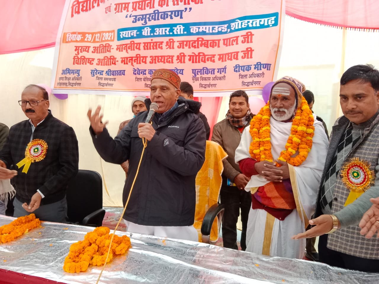 ये बातें बुधवार को ब्लॉक संसाधन केंद्र पर आयोजित उनमुखीकरण कार्यशाला को संबोधित करते हुए डुमरियागंज सांसद जगदंबिका पाल ने कही। उन्होंने कहा कि विद्यालयों में आवश्यक सुविधाओं को सरकार उपलब्ध करा रही है। बच्चों के अभिभावकों के खाता में 11 सो रुपए स्वेटर, जूता, मोजा व बैग के लिए भेजा गया है। अभिभावक इस पैसे को अपने बच्चों के सामग्री पर खर्च करें। खंड शिक्षा अधिकारी अभिमन्यु ने अध्यक्ष, सचिव, एवं ग्राम प्रधानों के प्रति आभार व्यक्ति किया। कार्यशाला का संचालन कर रहे एकेडमिक रिसोर्स पर्सन मुस्तन शेरुल्लाह ने एसएमसी अध्यक्षों , प्रधानाध्यापकों व ग्राम प्रधानों के कर्तव्य एवं दायित्व की जानकारी दी तथा सभी से विद्यालय कार्यों में सहयोग करने की अपील किया। प्रधान संघ अध्यक्ष पवन मिश्रा , उप जिलाधिकारी संत कुमार,थानाध्यक्ष बृजेश सिंह, मनीष  सिंह, लालजी यादव , एसआरजी अपूर्व श्रीवास्तव ने भी संबोधित किया । एसआरजी अपूर्व श्रीवास्तव, तुलसीराम, प्राची मिश्रा,  प्रीती मिश्रा, कुसुम लता , सावित्री देवी , गायत्री देवी , कल्पना,  राजकुमार ,जीत बहादुर चौधरी , प्रमोद कुर्मी ,राम अवतार ,रामप्रसाद ,राम ललित , ग्राम प्रधान राम मिलन चौधरी, शौकी लाल, विक्रम यादव, सुभाष चंद, सूर्य प्रकाश पांडेय आदि उपस्थित रहे।