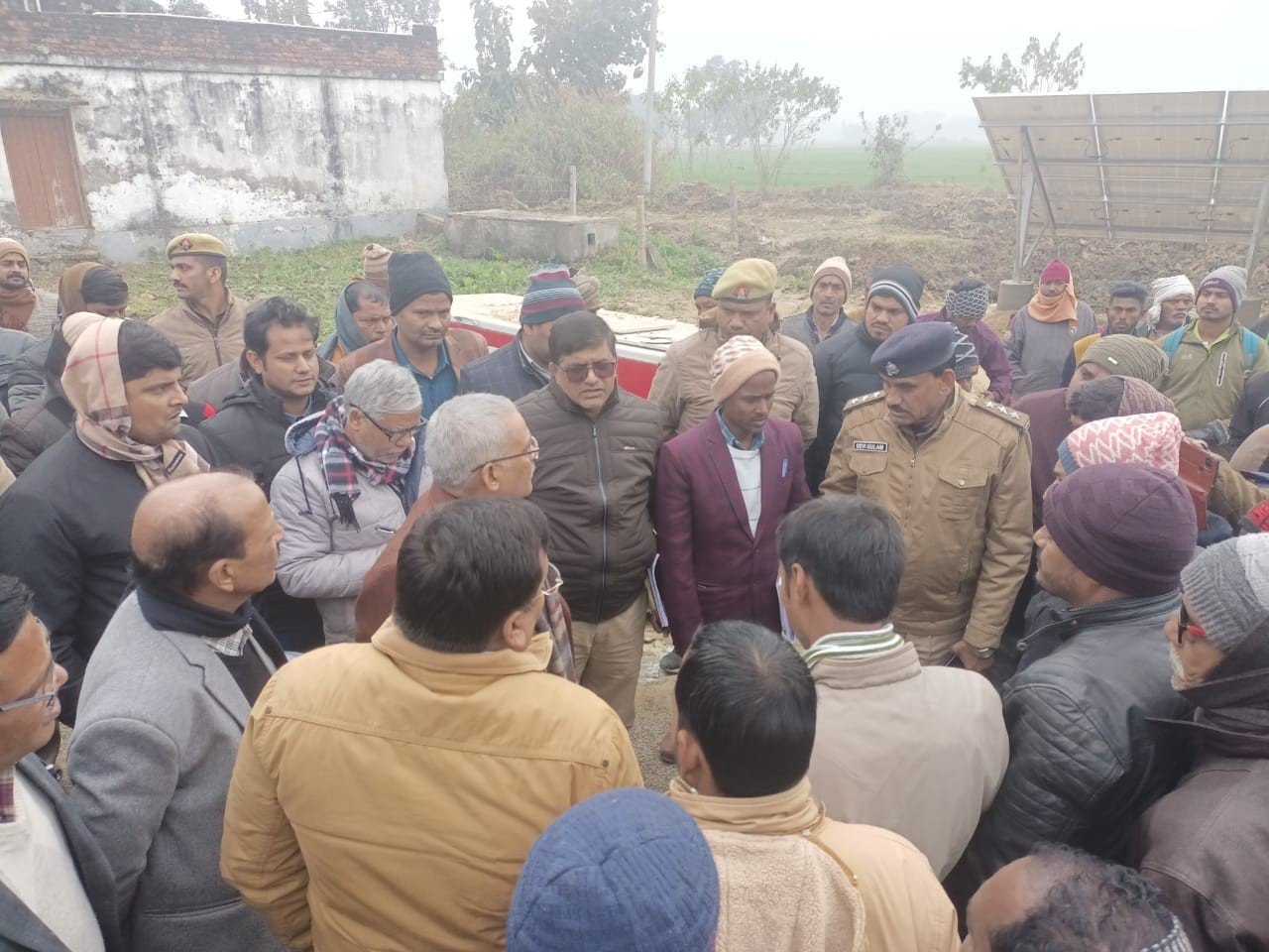 सिद्धार्थनगर नौगढ़ तहसील क्षेत्र विकास खंड जोगिया के ग्राम पंचायत देवरा बाजार में निर्माणाधीन पानी की टंकी का मंडलायुक्त योगेश्वर राम मिश्र ने किया निरीक्षण जल जीवन मिशन के तहत पेयजल योजना से सभी घरों जोड़ने का किया जा रहा है कार्य मंडलायुक्त बस्ती ने किया निरीक्षण इस दौरन मंडलायुक्त ने ग्रामीणों से कहा कि प्रत्येक हर घर में पहुंचेगा शुद्ध पेयजल योजना के तहतहर घर मे दिया जाएगा शुद्ध पानी इस दौरान अधिशासी अभियंता जल निगम राजेंद्र सिंह ने बताया कि लगभग 5 महीनों में निर्माण कार्य पूरा कर लिया जायेगा सभी ग्रामीणों के घरों को पेयजल योजना से जोड़ दिया जाएगा इस दौरान जिलाधिकारी संजीव रंजन,अपर जिलाधिकारी उमाशंकर, सदर एसडीएम प्रदीप कुमार यादव, पुलिस क्षेत्राधिकारी देवी गुलाम, अधिशासी अभियंता जल निगम राजेंद्र सिंह, खंड विकास अधिकारी सतीश सिंह,ग्राम विकास अधिकारी प्रदीप सिंह, ग्राम विकास अधिकारी आशीष कुमार,ग्राम प्रधान देवरा बाजार रोहित कुमार,पूर्व ग्राम प्रधान रत्नेश सिंह व ग्रामीण राजकुमार सिंह,राहुल सिंह,शिव कुमार सिंह आदि लोग मौजूद रहे।