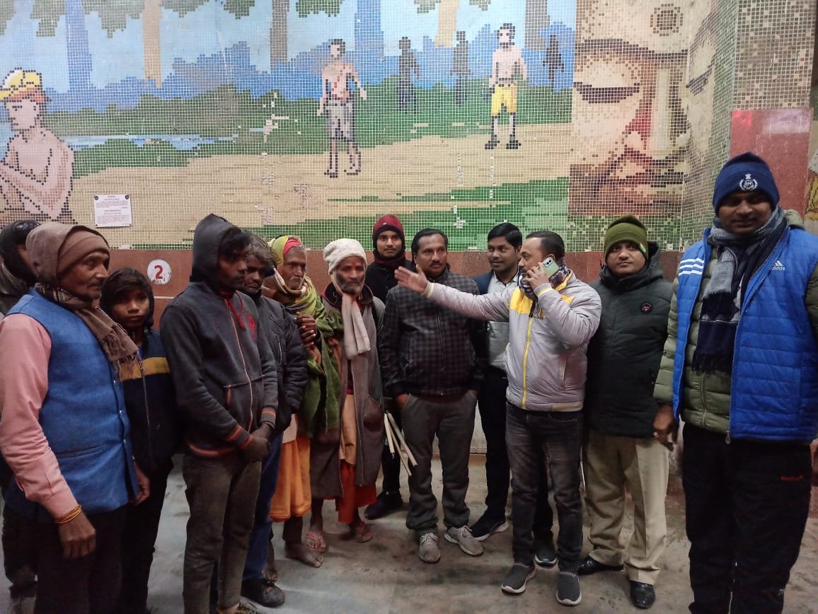 रेलवे के वाणिज्य निरीक्षक ने यात्रियों को बांटे कंबल मोजा टोपी