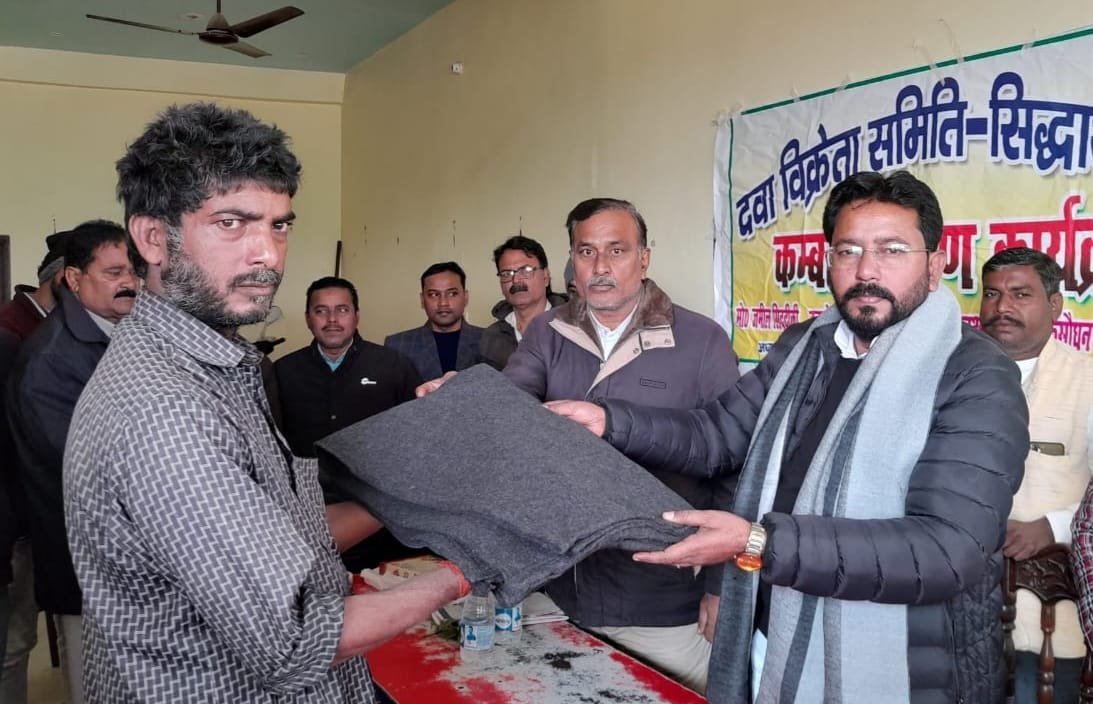सिद्धार्थनगर। दवा विक्रेता समिति सिद्धार्थनगर द्वारा शनिवार को बर्डपुर एवं अलीगढ़वा में गरीब असहाय लोगों के बीच कंबल वितरण कार्यक्रम किया गया।