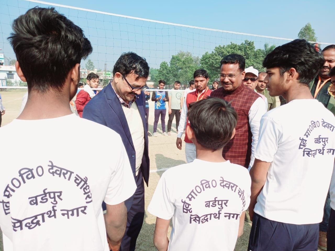 सिद्धार्थनगर 21 जनवरी। ब्लॉक संसाधन केन्द्र बर्डपुर के क्रीड़ांगन में आयोजित तीन दिवसीय सांसद खेल महा कुम्भ में प्रतिभाग करने वाले पूर्व माध्यमिक विद्यालय देवरा चौधरी के वालीबाल टीम को विद्यालय प्रबन्ध समिति के सदस्य जियाऊ प्रसाद व प्रमिला देवी ने खण्ड शिक्षा अधिकारी अरुण कुमार की मौजूदगी में सभी खिलाड़ियों को खेल किट (टीशर्ट और हॉफपैंट) भेंट कर खेल महा कुम्भ के लिए रवाना किया तथा जीत कर विद्यालय और क्षेत्र का नाम रौशन करने की शुभकामना दी।